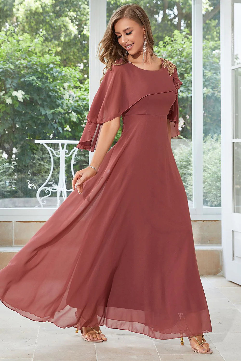 Insrs - Batwing Sleeves Appliques Chiffon Long Wedding Guest Dress