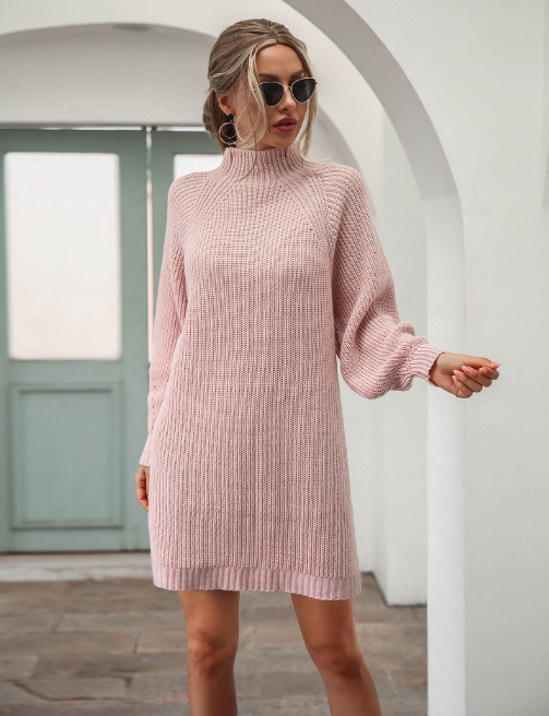 Insrs - Mid-length raglan sleeve semi-turtle neck skirt