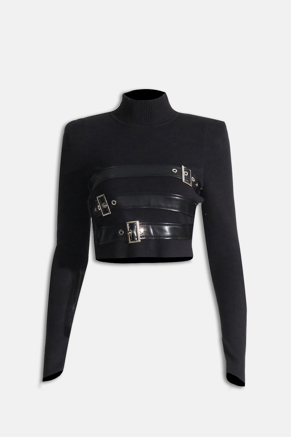 The Alaina Knit Belts Top in black is a versatile addition to your wardrobe. Made from high-quality knit fabric and featuring a stylish belt detail. this top offers a comfortable and flattering fit. Perfect for both casual and dressy occasions. it is a must-have for any fashion-forward individual.