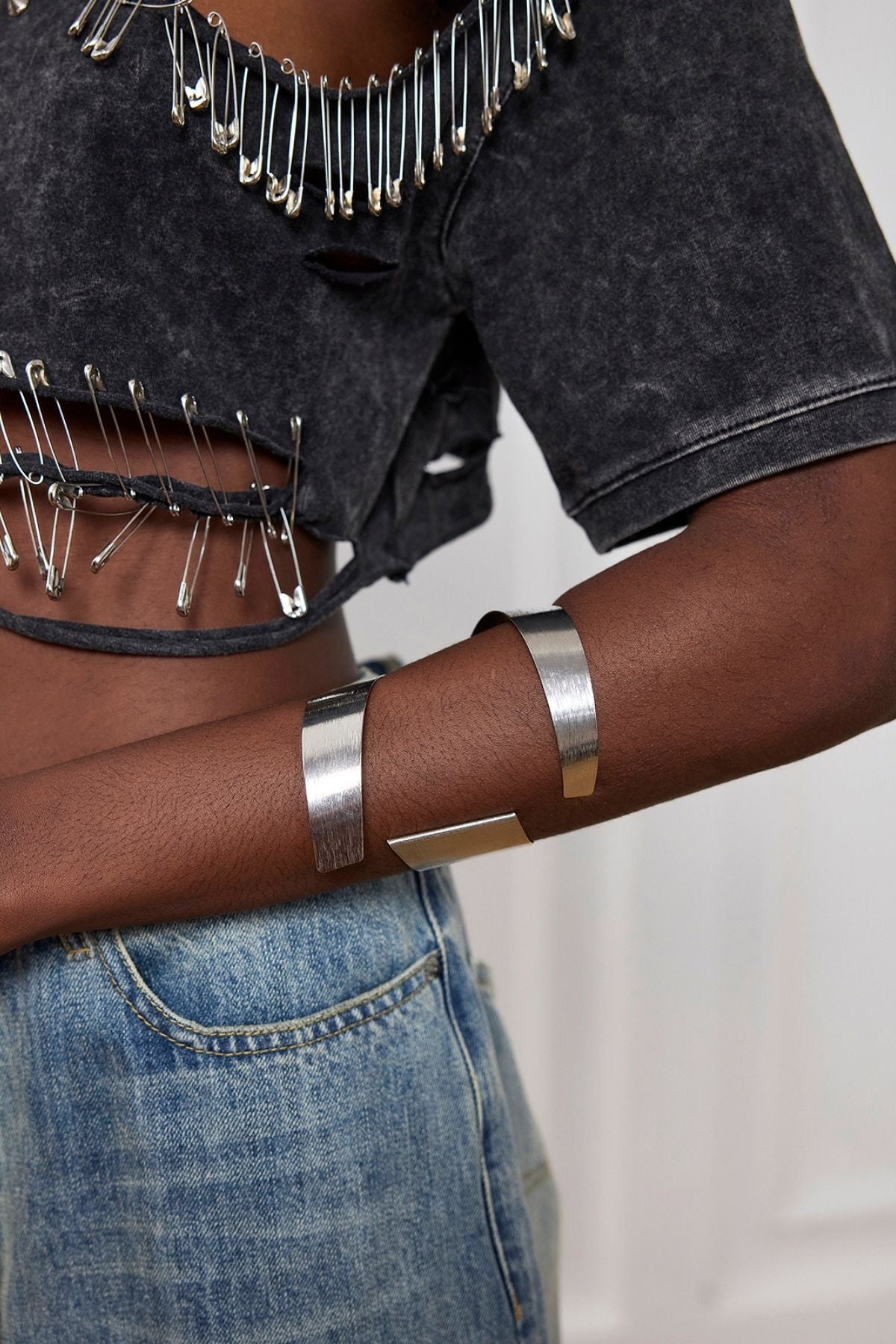 Introducing the beautifully crafted Alaiya Asymmetric Bracelet in Silver. Handmade with precision and attention to detail. this bracelet is sure to make a statement. With its unique and modern design. it will add a touch of elegance to any outfit. Made with high-quality materials. this bracelet is both durable and stylish. Elevate your style with the Alaiya Asymmetric Bracelet in Silver.