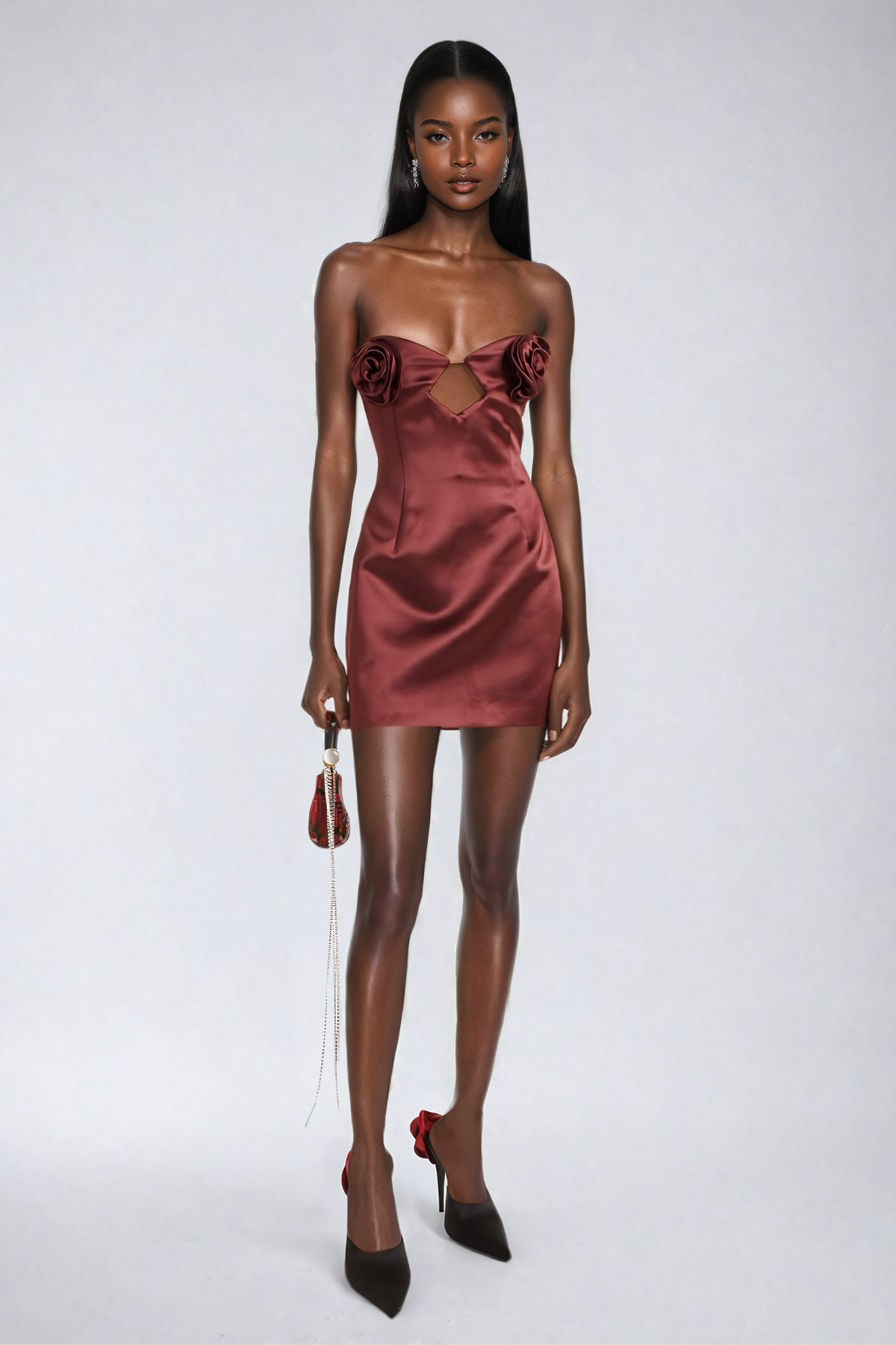 Alaula Flower Cutout Strapless Satin Mini Dress