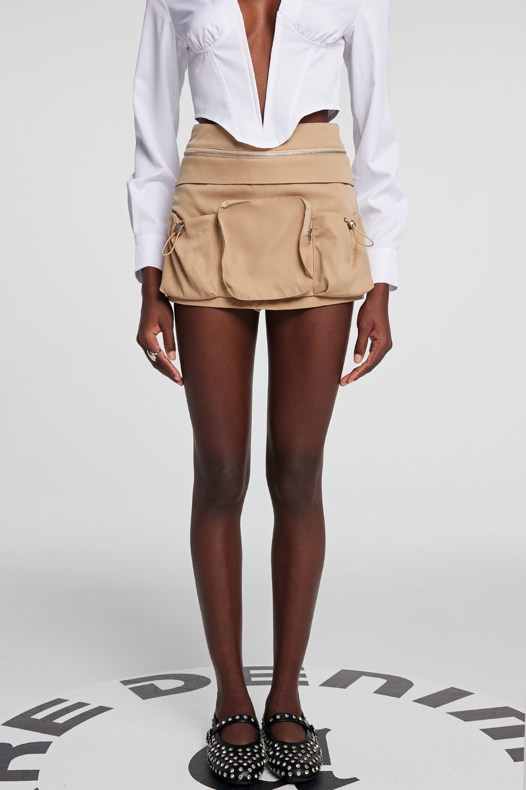 Introducing the Andi Pocket Mini Skirt in Khaki - a stylish addition to your wardrobe! This skirt features a unique patchwork design and convenient pockets. making it both trendy and functional. Perfect for adding a touch of personality to any outfit. Don't miss out - get yours today!