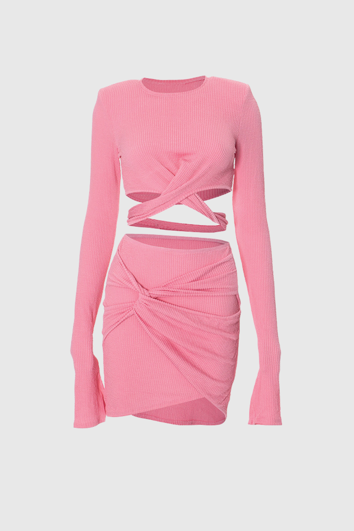 This Anvika Cross Bodycon Cutout Set flawlessly combines style and comfort. Expertly crafted. it features a unique cross bodycon design with strategically placed cutouts for a trendy and flattering look. Made with high-quality materials. this set provides a comfortable fit and long-lasting wear. Perfect for any occasion. it's a must-have addition to your wardrobe.