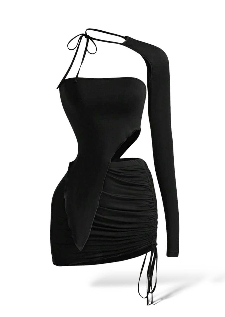 3 Pieces piece Tube top Side Skirt One Arm-Textured mesh knit that has medium stretch