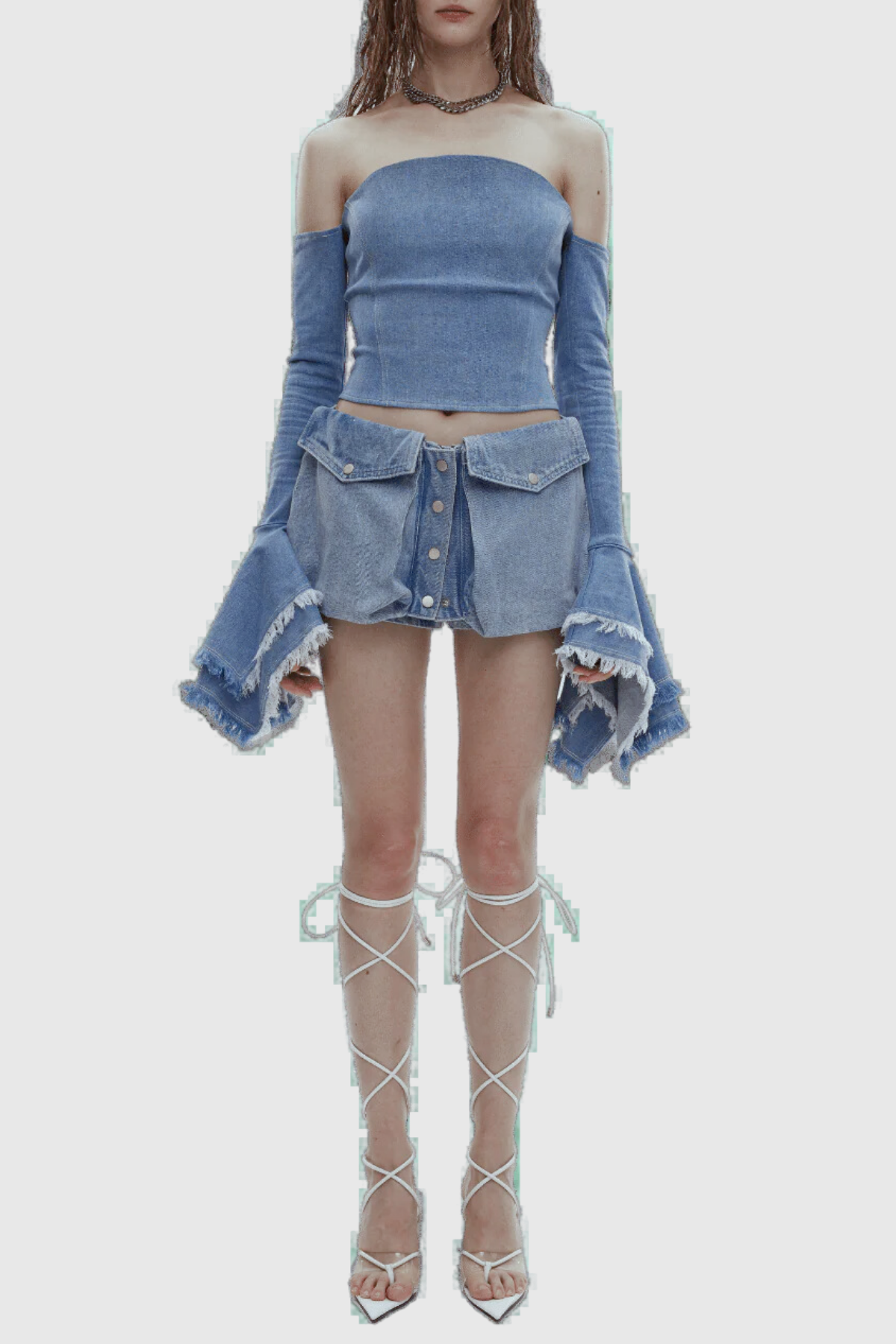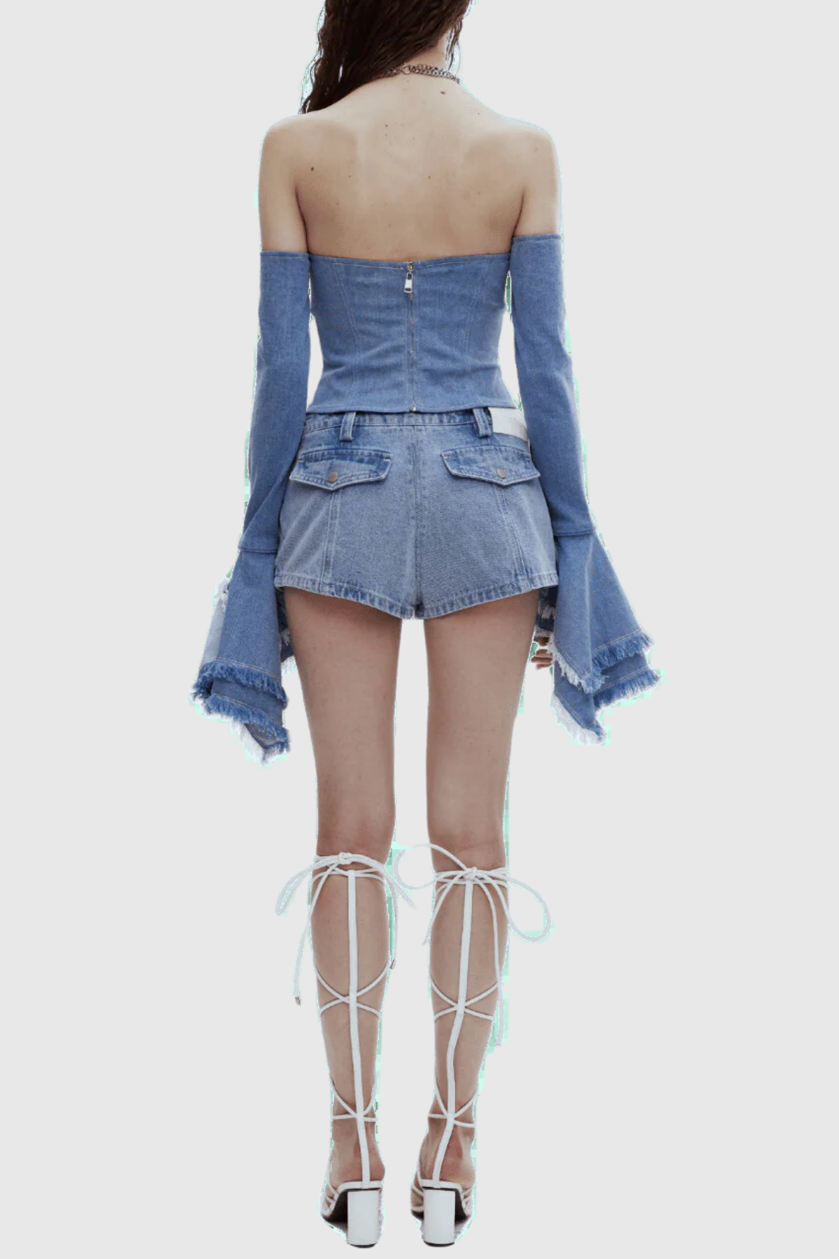 The Ava Denim Off Shoulder Bodycon Top offers a form-flattering fit with its bodycon design and off-shoulder neckline. Crafted with high-quality denim. this top provides both style and comfort. Perfect for a trendy and chic look. it's a versatile addition to any wardrobe.