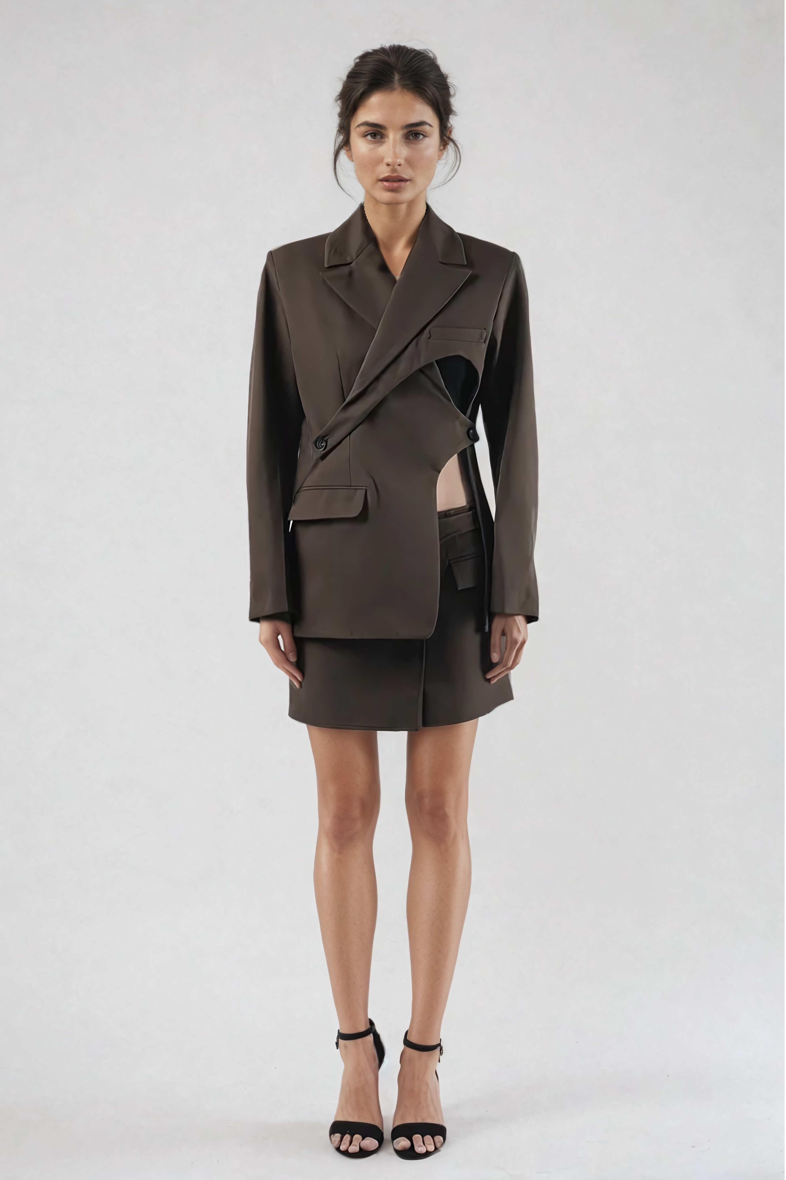 Expertly designed. this Beck Deconstruct Cutout Long Sleeve Blazer seamlessly combines style and functionality. With its unique cutout design. this blazer adds a touch of edginess to any ensemble. Made with high-quality materials. it offers both comfort and durability. Perfect for any occasion. this blazer is a must-have for any fashion-forward wardrobe.