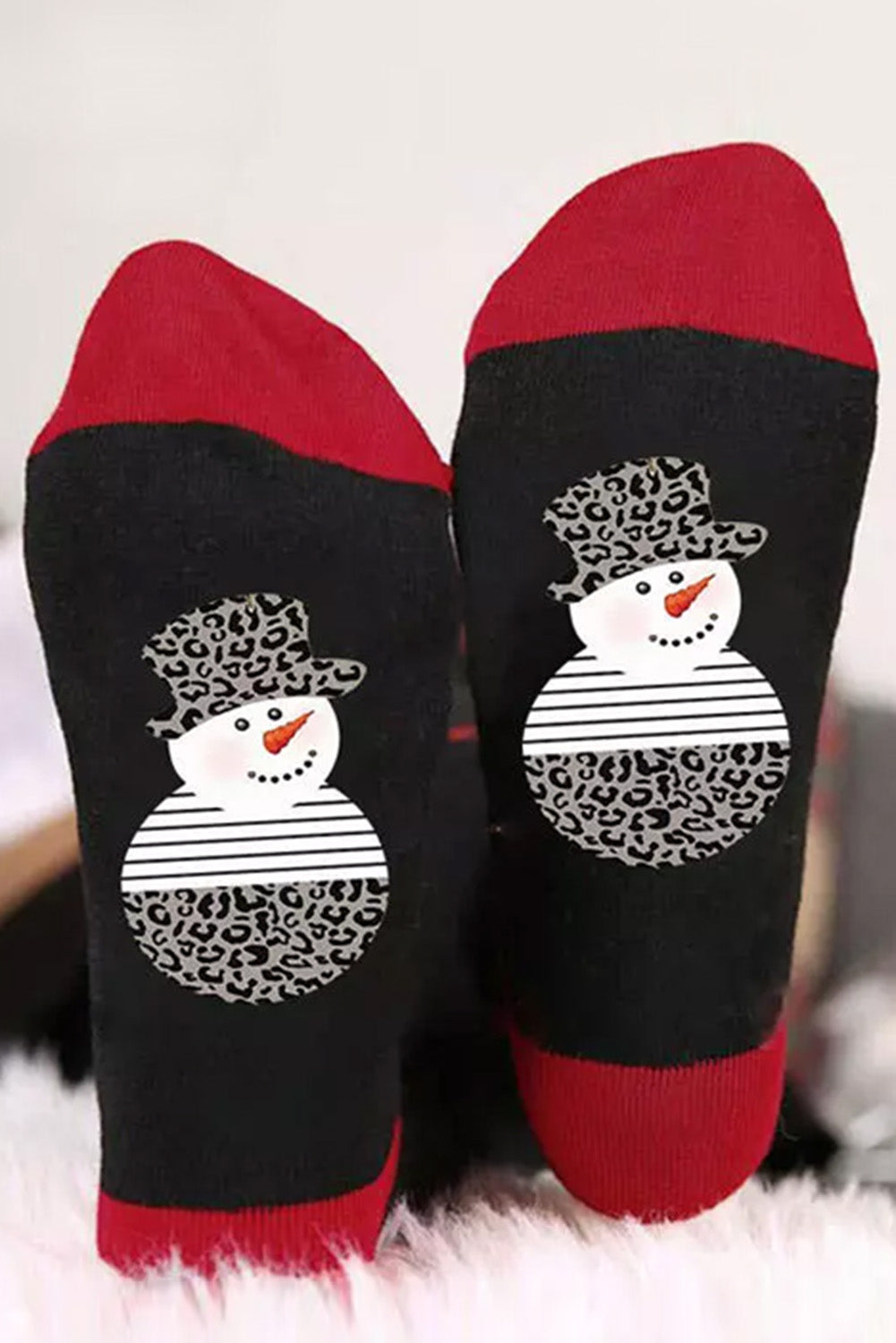 Black Christmas Snowman Color Block Crew Socks