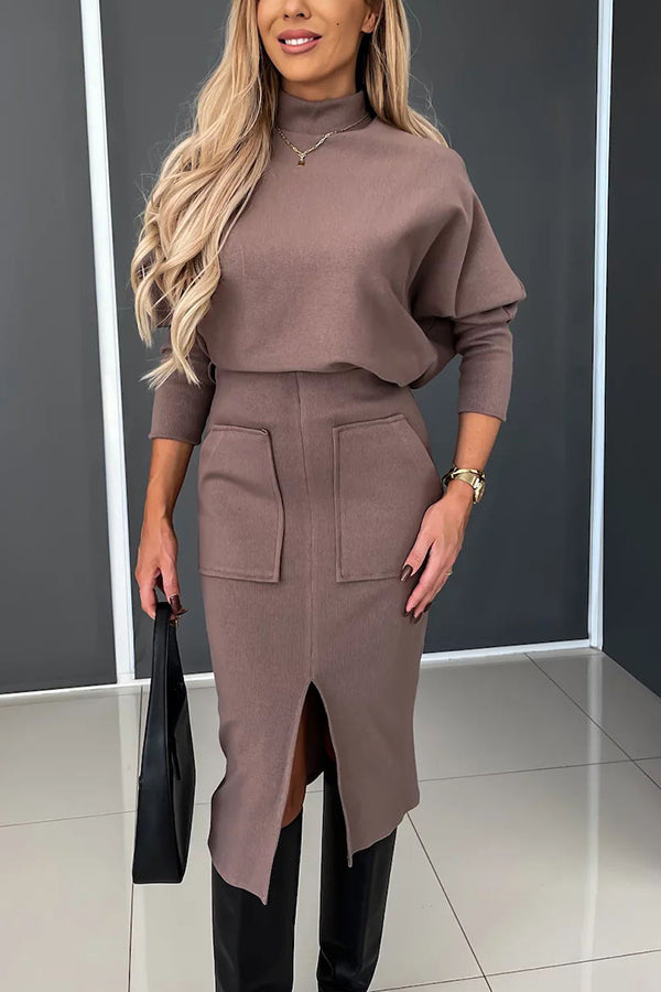 If you're looking for a modern and elegant fashion solution. Chill Mornings is for you! The turtleneck features batwing sleeves and double cuffs. The skirt features a wide elastic waistband to hide any imperfections and fun front pockets that complement the ensemble.The whole body is made of ribbed stretch fabric. which fits the body elegantly and is suitable for all body types. Choose the color that suits you and have fun using this set!