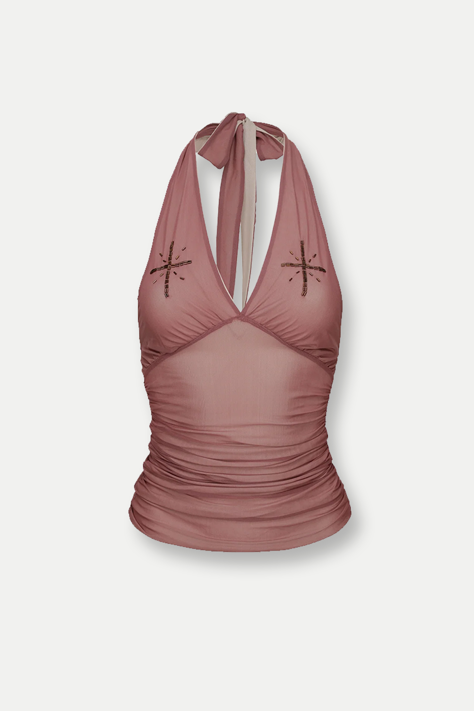 This Dakota halter neck top is both stylish and versatile. Featuring a backless design and ruched details. it offers a modern twist on a classic silhouette. The perfect addition to any wardrobe. this top can be dressed up or down for any occasion.