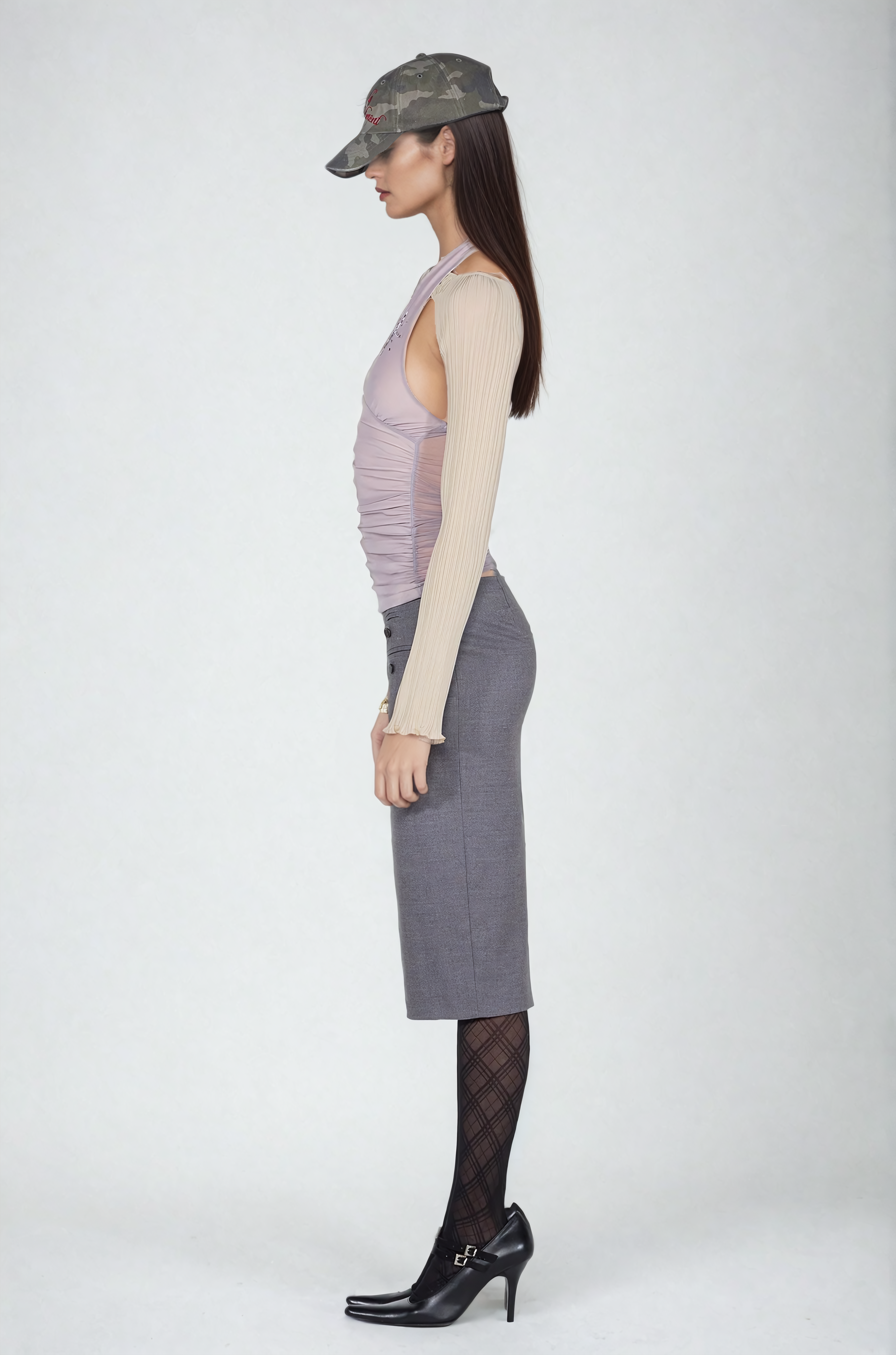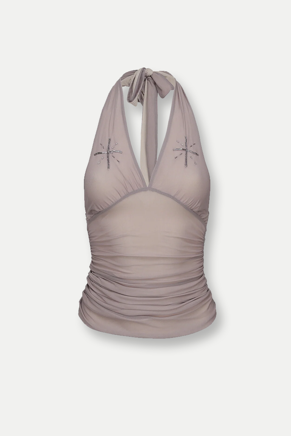 Expertly designed for a sleek and stylish look. the Dakota Halter Neck Backless Ruch Top is a must-have addition to any wardrobe. With its unique halter neck design. open back. and ruched detailing. this top is perfect for adding a touch of elegance to any outfit. Crafted in a beautiful shade of slight purple. this top is sure to make a statement.