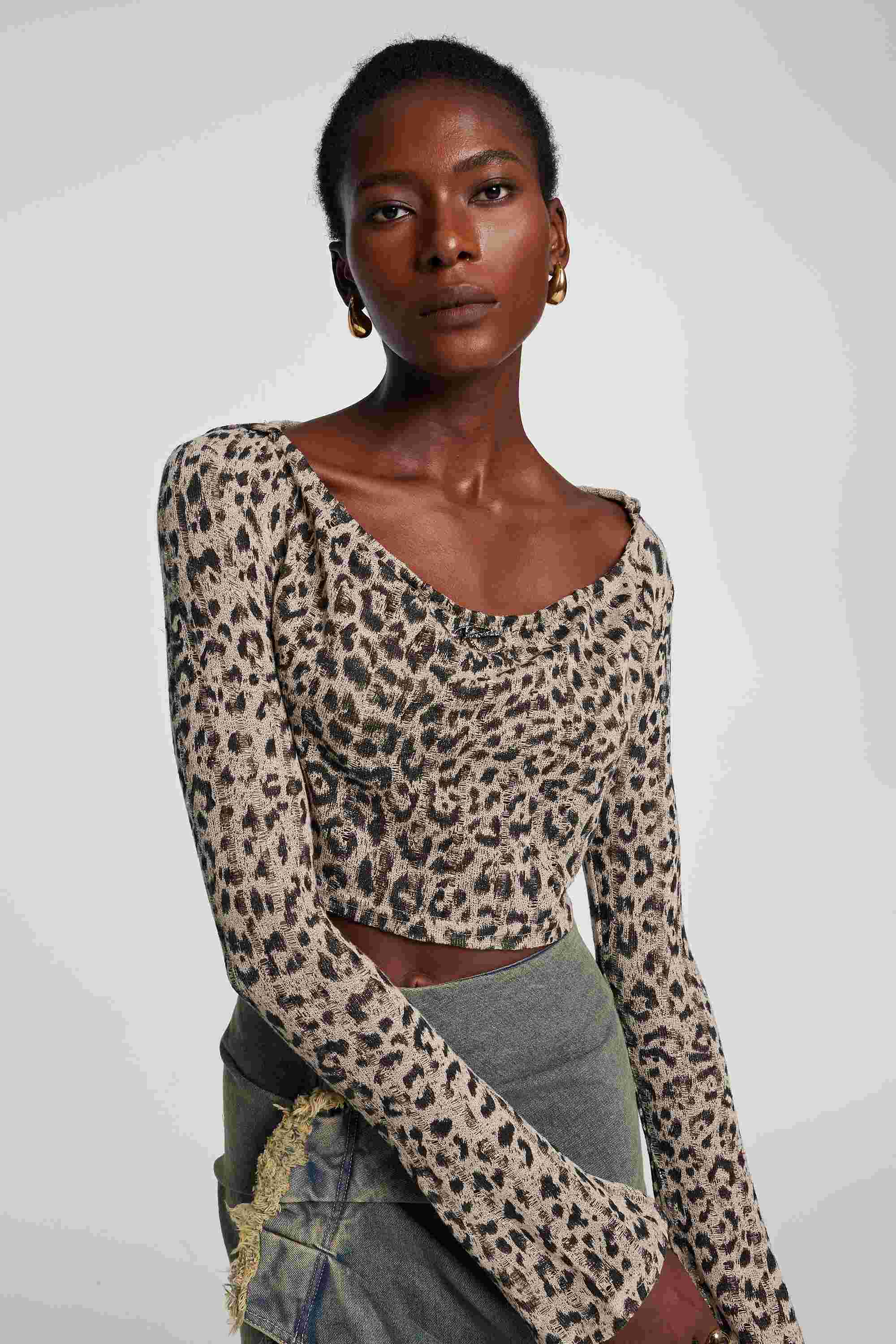 Expertly designed for a fierce yet comfortable look. the Delta Long Sleeve Leopard Torn Crop Top is a must-have piece for any fashion-forward wardrobe. Made with quality materials. this top features a trendy leopard print and stylish torn design. Elevate your style with this versatile and chic crop top.
