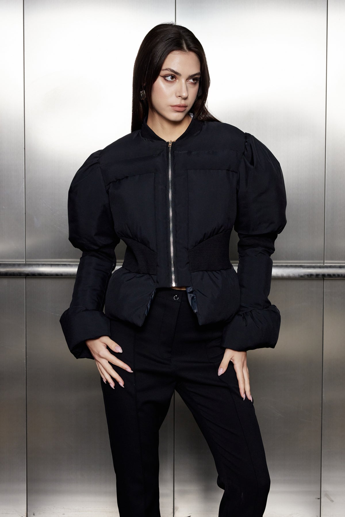 Experience the plush luxury of our Emily Padded Satin Down Peplum Jacket in classic black! Feel enveloped in sophistication and chic style as you layer up in ultimate comfort.