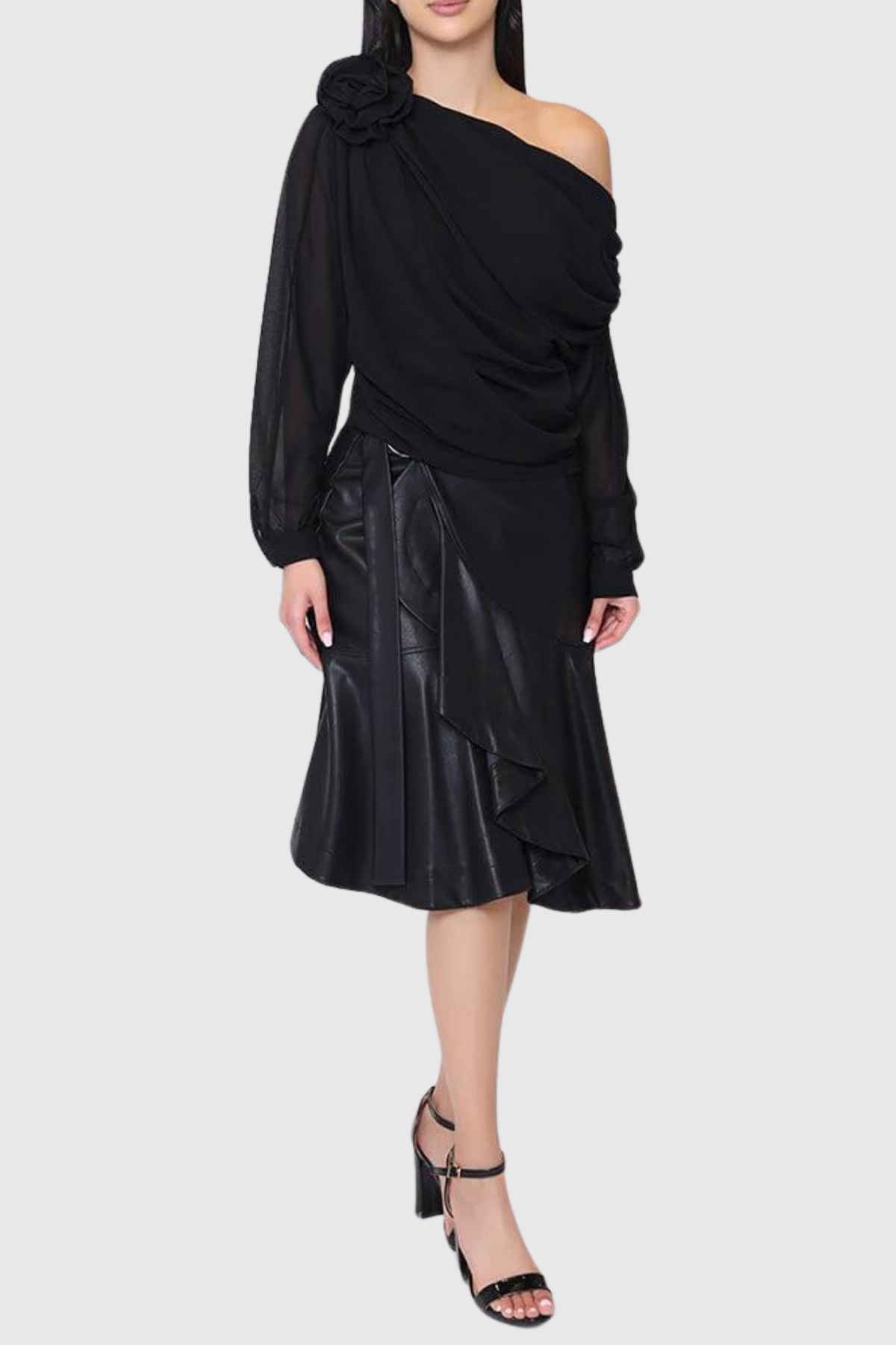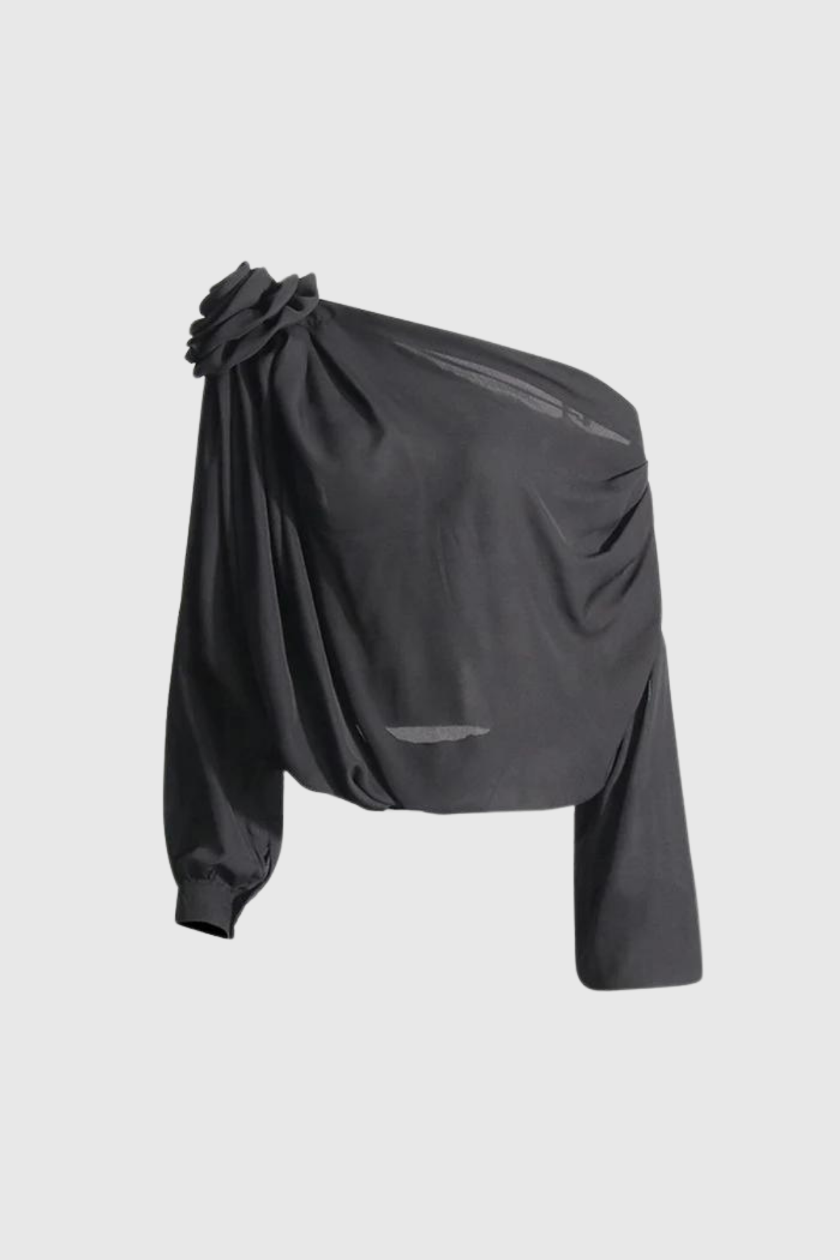 This elegant Ensley Flower Single Shoulder Mesh Top in Black features a modern mesh design that adds a touch of sophistication to any outfit. With its single shoulder style and flattering flower detailing. this top is the perfect choice for a stylish and sophisticated look.