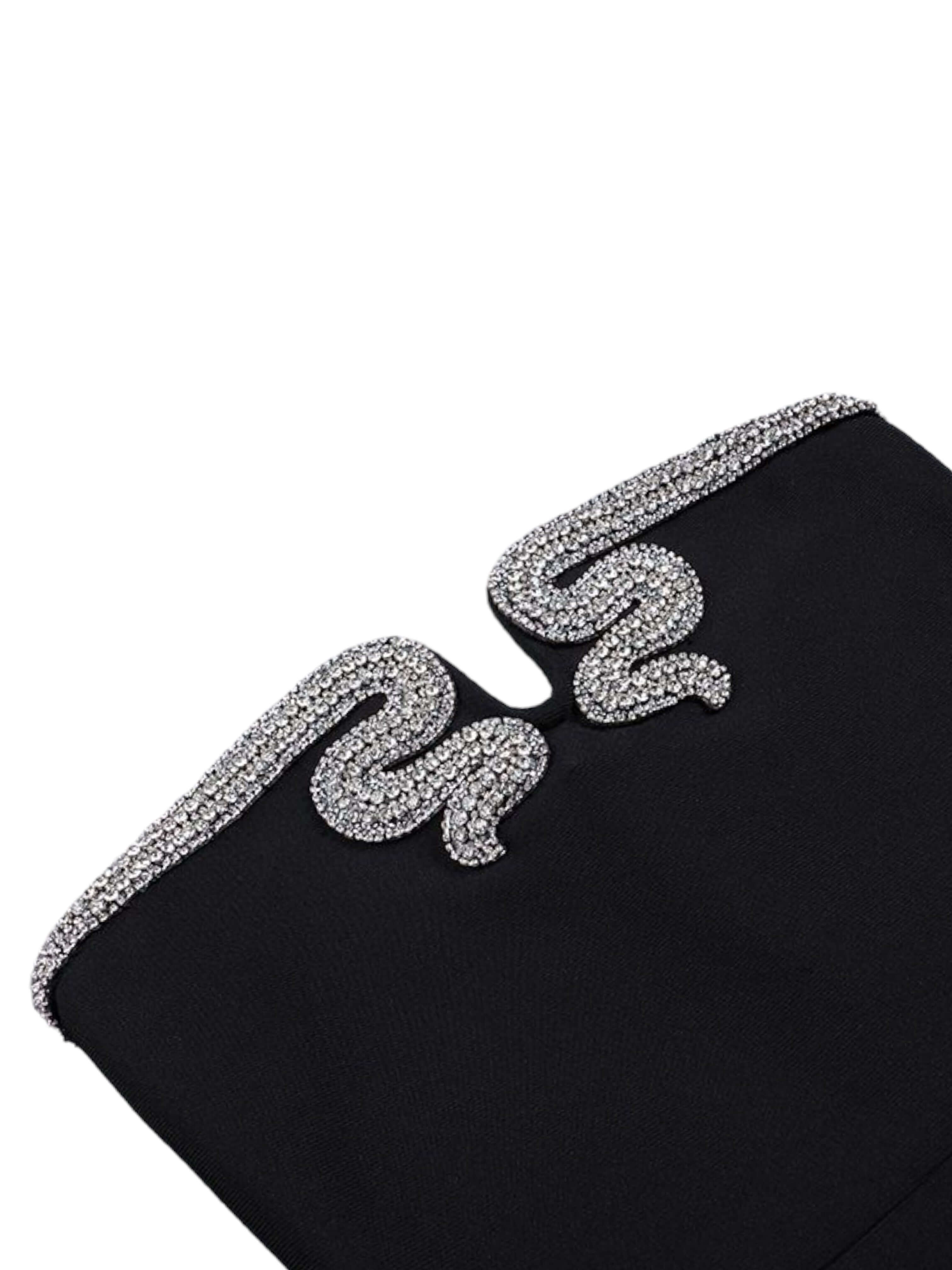 Make an unforgettable entrance with this sophisticated black evening gown. designed for elegance and impact. The dress features striking crystal embellishments on the shoulders. adding a touch of sparkle and luxury to the classic black silhouette. Crafted to flatter with a sleek. form-fitting design. this gown is perfect for gala events. formal parties. or anywhere you want to shine.