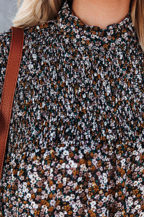 Evermore Floral Print Smocked Ruffle Top - 3 Colors