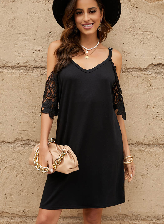 Insrs - Summer casual sling off-the-shoulder solid color dress