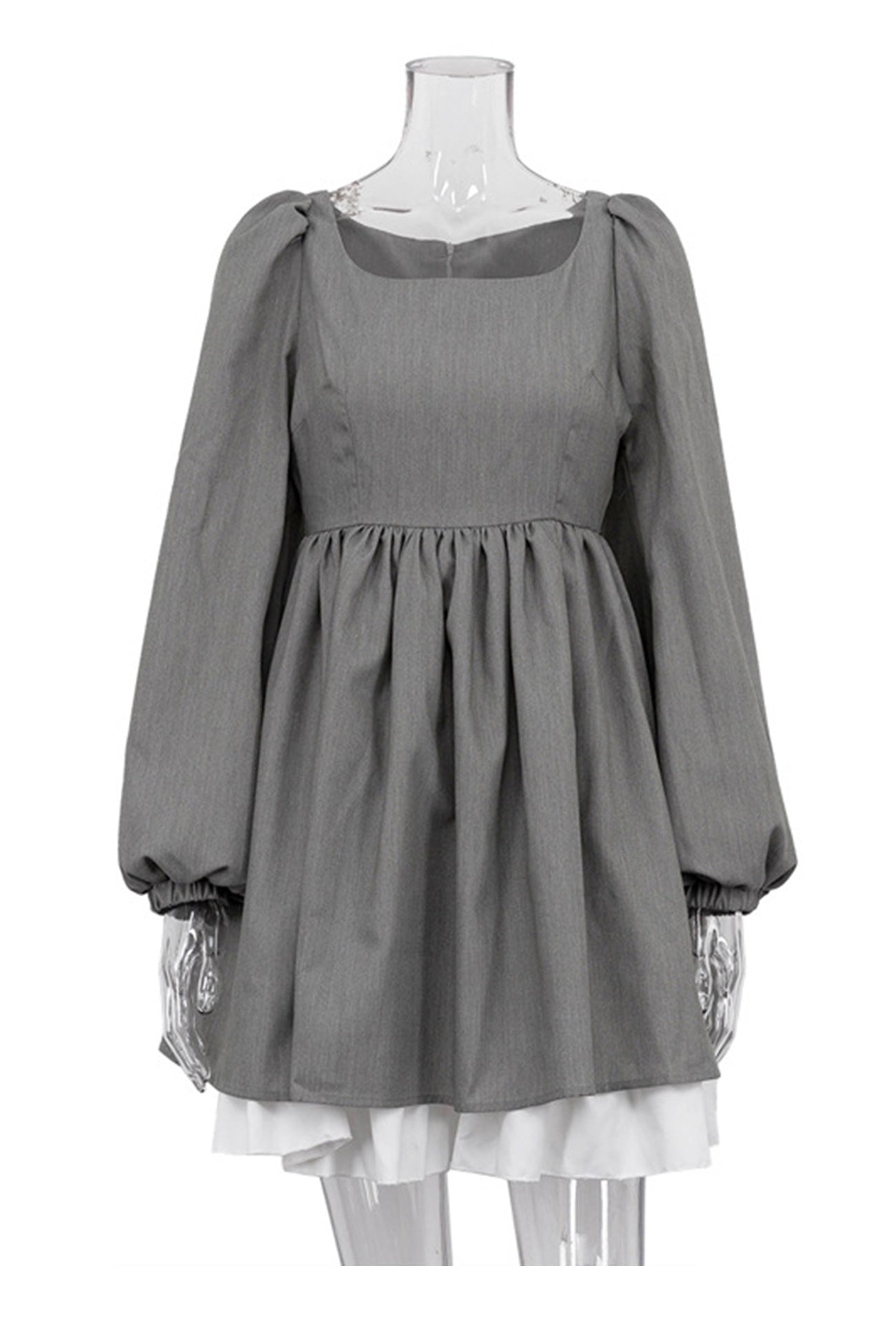 Grey High Waist A-Line Babydoll Dress