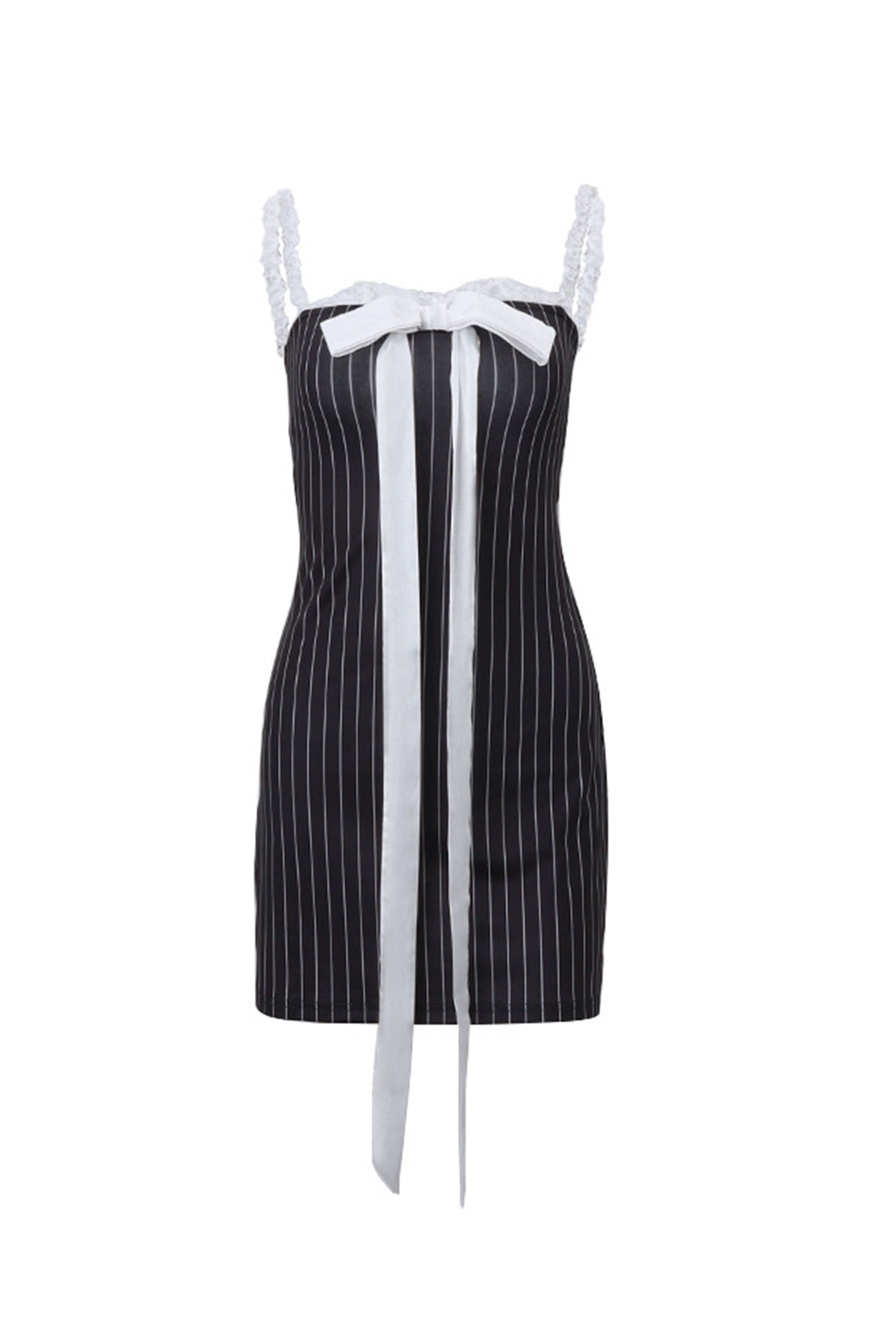 Lace Straps Bow-tie Striped Cami Dress