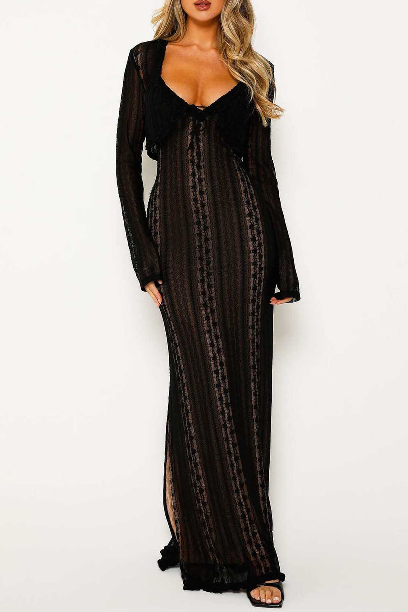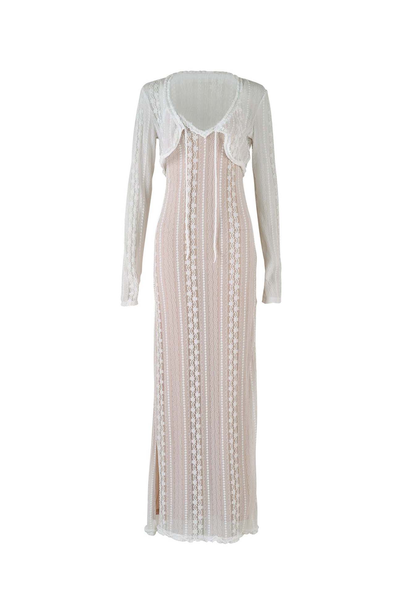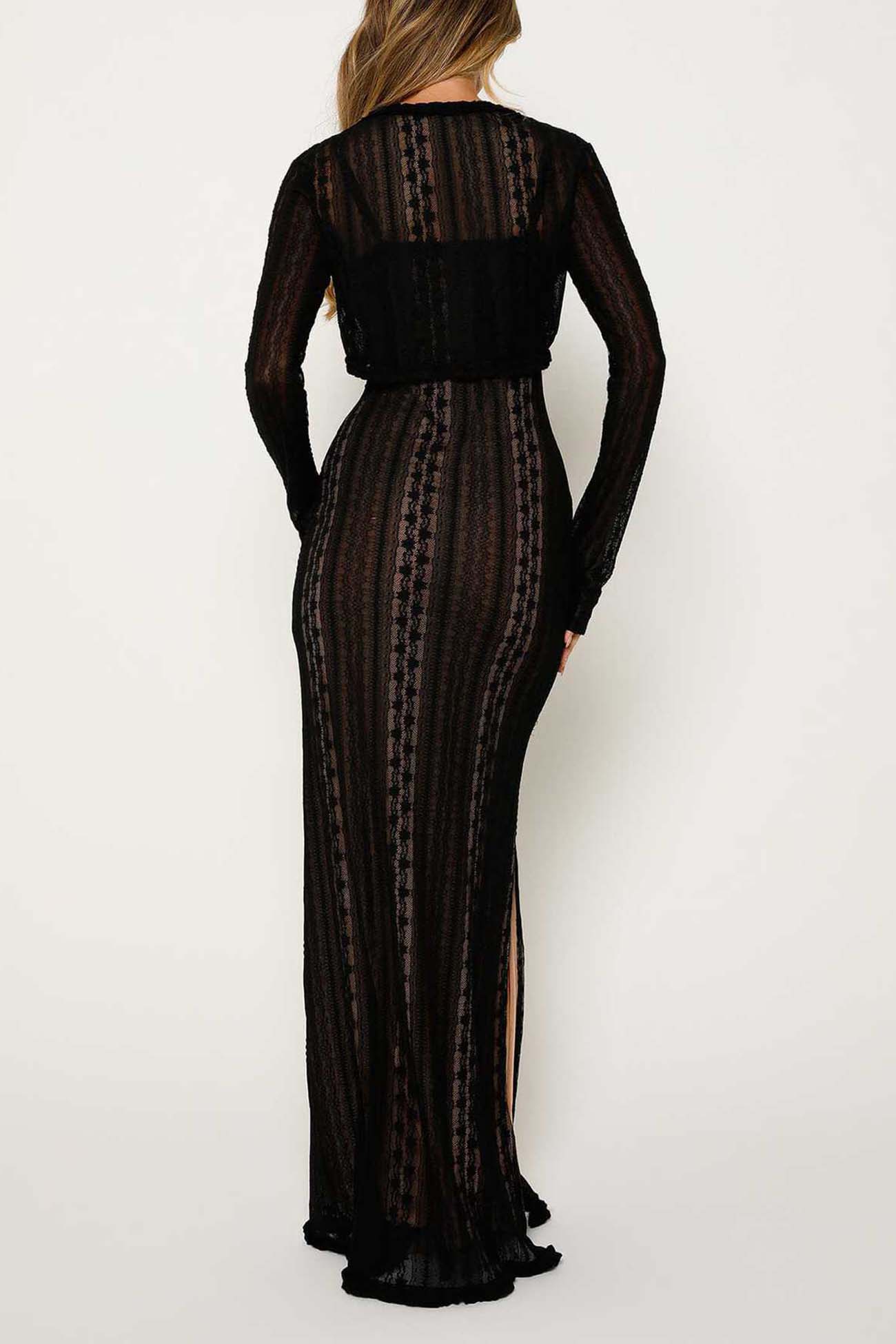 Lace V Neck Slit Two-Piece Dress