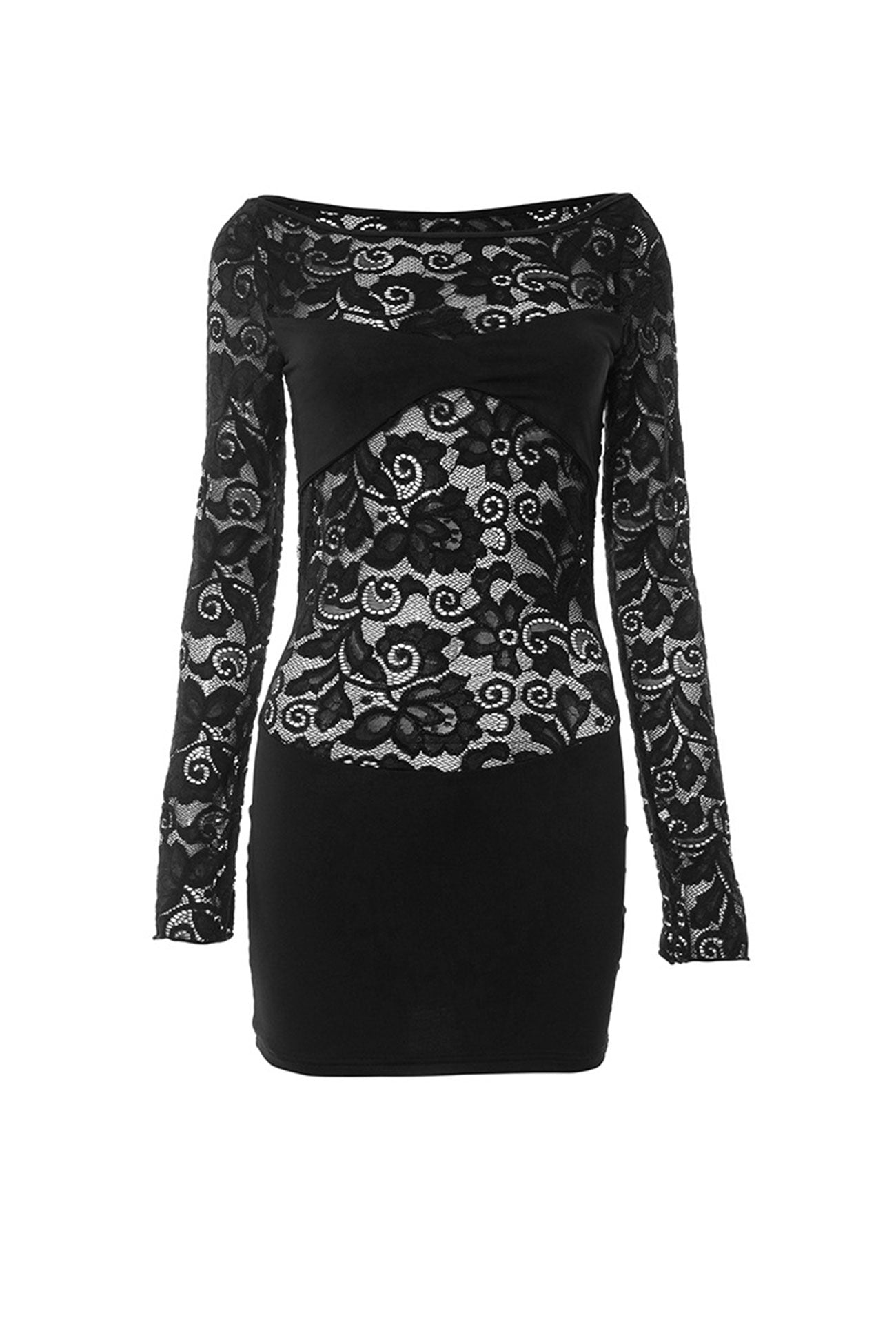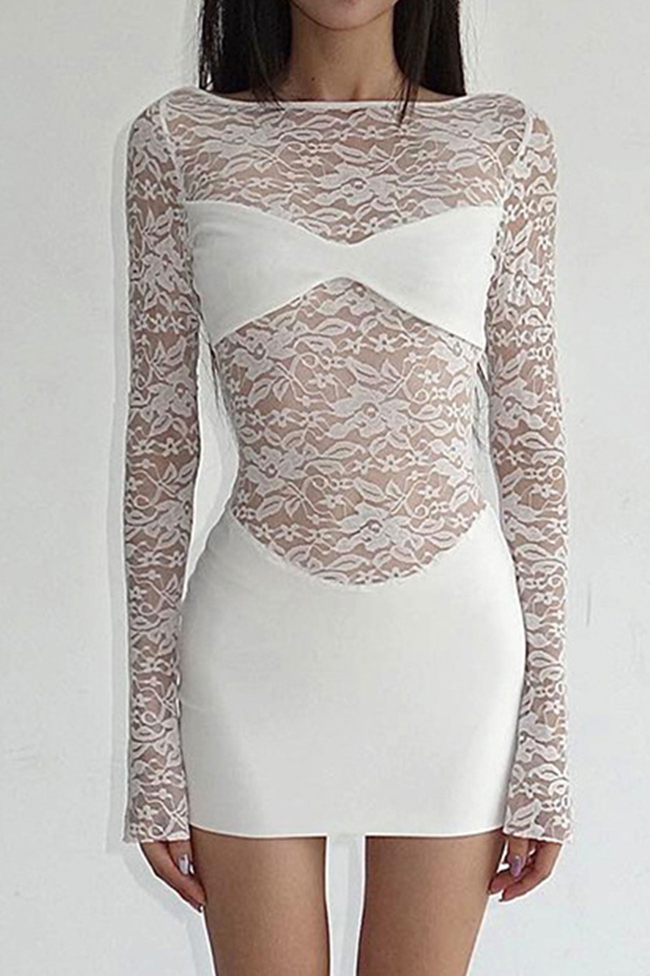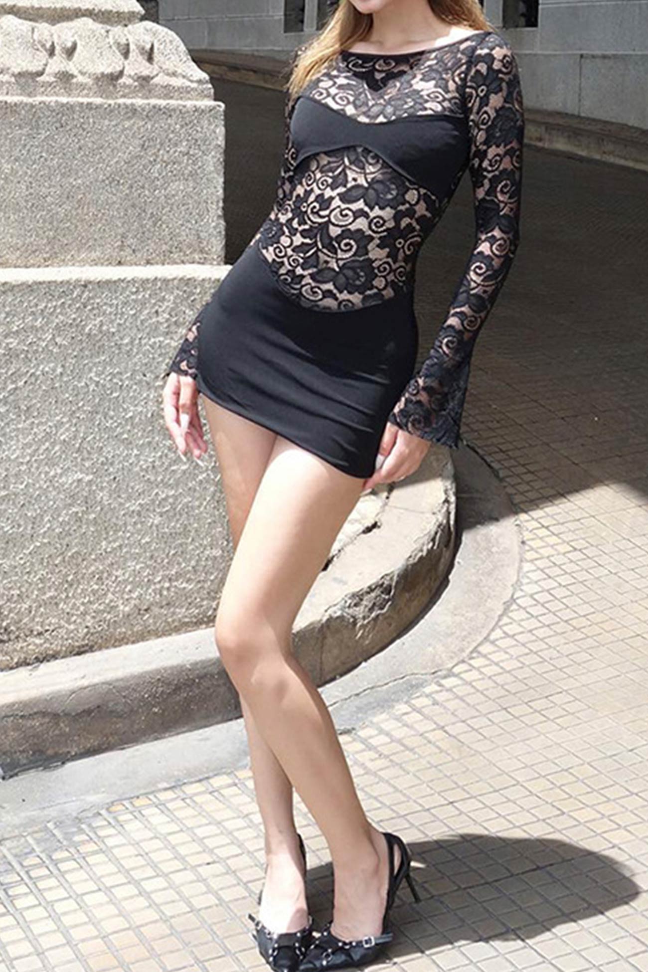 Long Sleeve Lace Hollow Out Pack Hip Dress