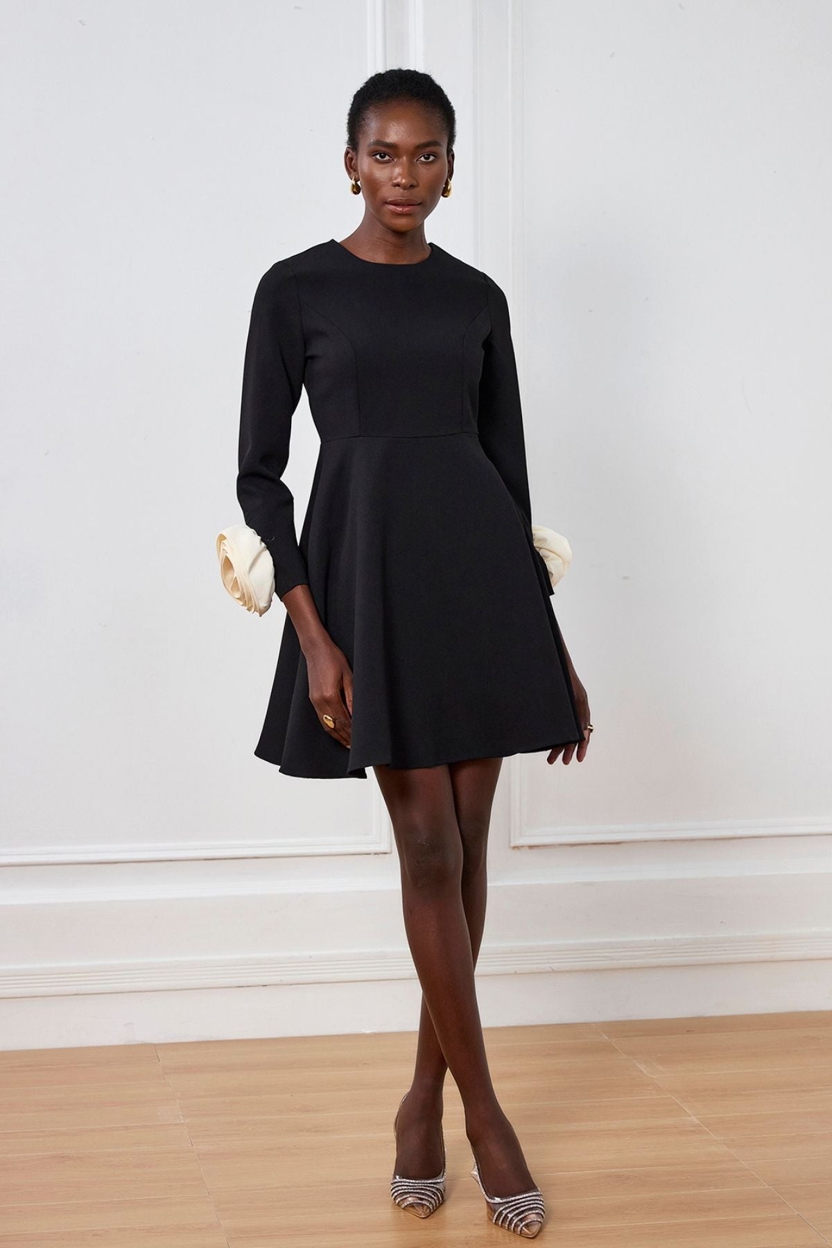 Expertly crafted. the Magdalena Bodycon Flower Long Sleeves Mini Dress combines style and comfort. The bodycon fit accentuates your figure while the flower design adds a touch of femininity. With long sleeves and a mini length. this dress is perfect for any occasion.