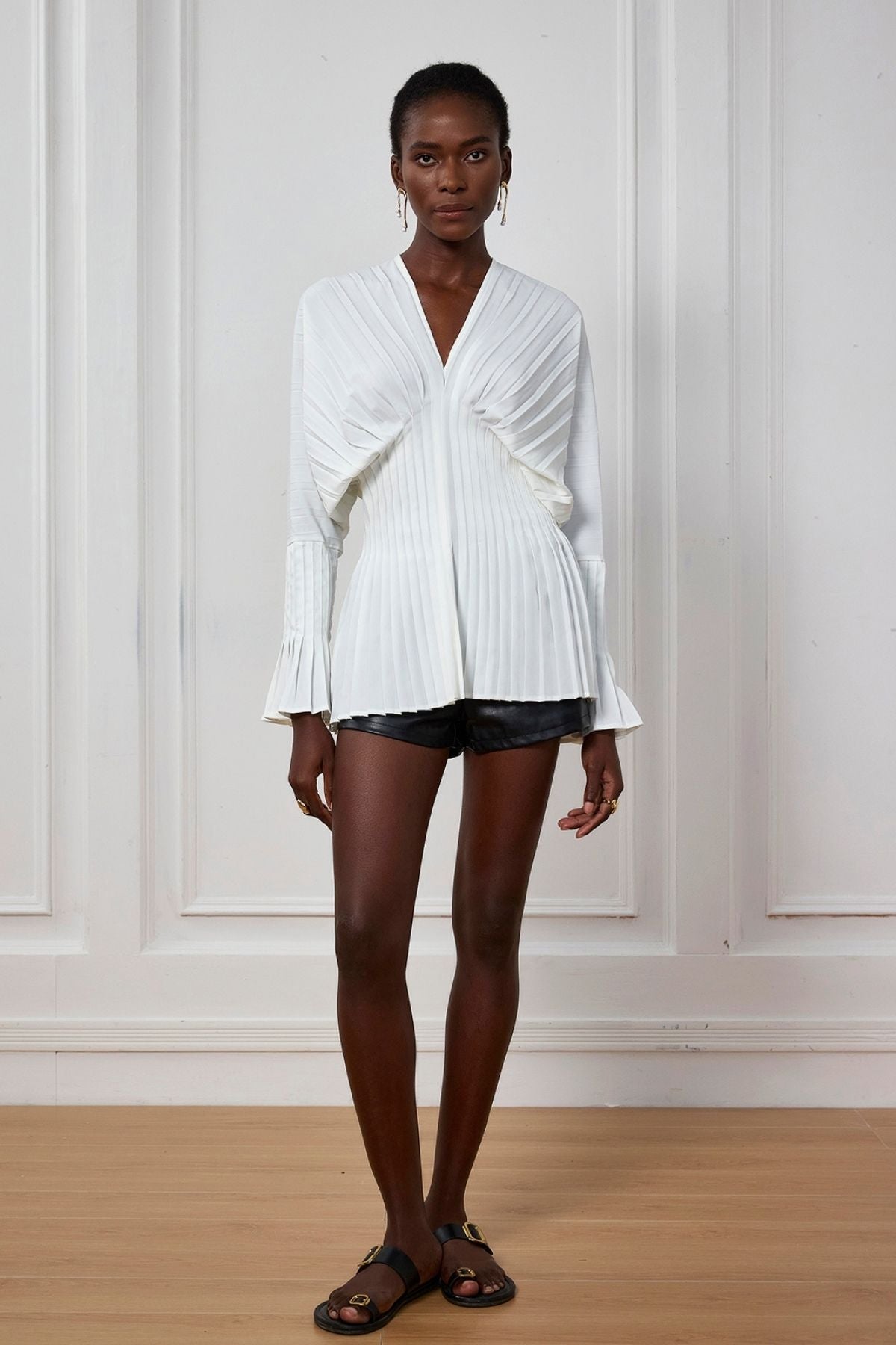 Experience a flattering and stylish look with our Marleigh Ruch Plunge Bodycon Top. The ruched detailing and plunging neckline accentuate your curves. while the bodycon fit provides a sleek silhouette. Perfect for any occasion. this top is a must-have for all fashion-forward individuals.