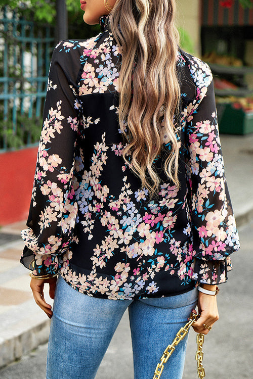This blouse is making promises that we know it can keep! It's so cute and feminine! That floral print is perfect for summer and we love the colors! This ruffled blouse is going to be great for works days. grabbing lunch with friends. or for any summer event you want to look cute but also feel your best! This blouse features a high round neckline. a floral print. long sleeves. and ruffled detailing.
