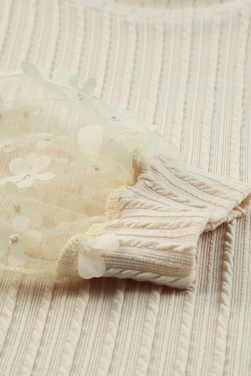 This sweater is the perfect combination of femininity and coziness! The flowers detailing around the sleeves give this sweater such a sweet look and the knit pattern are so dainty! We also really love that classic round neckline!