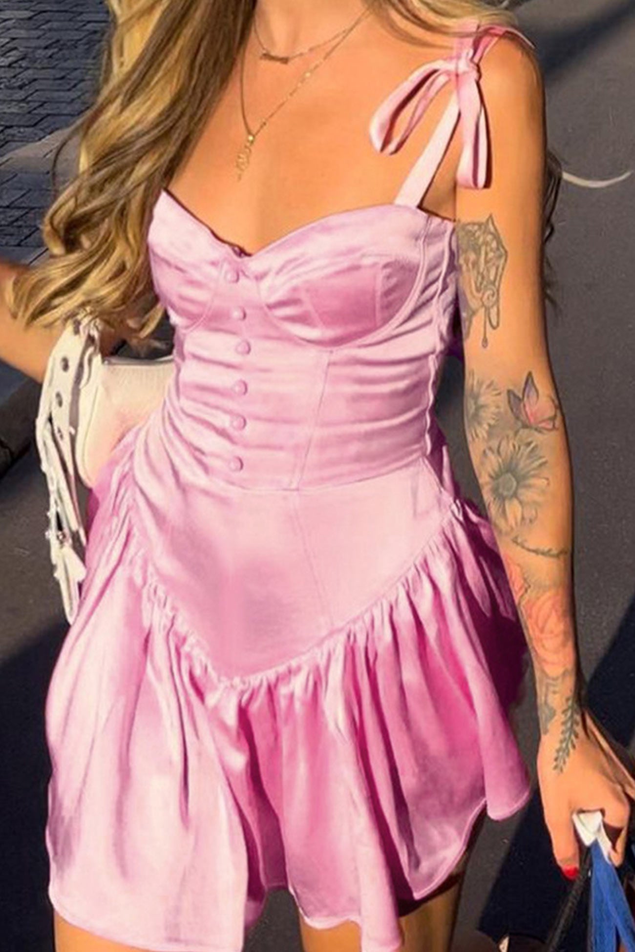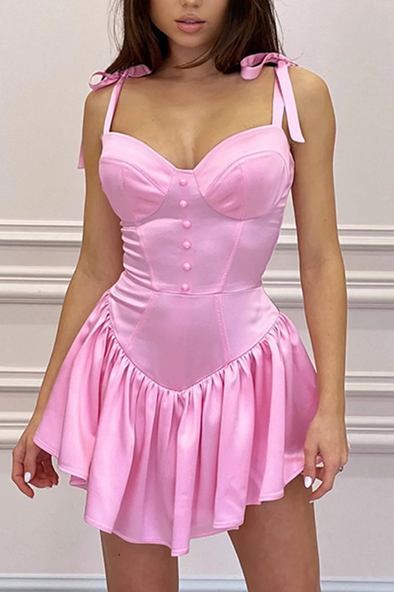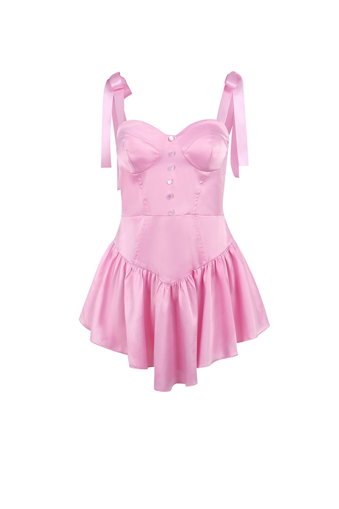 Insrs - Pink Tie-straps Corset Ruched Dress