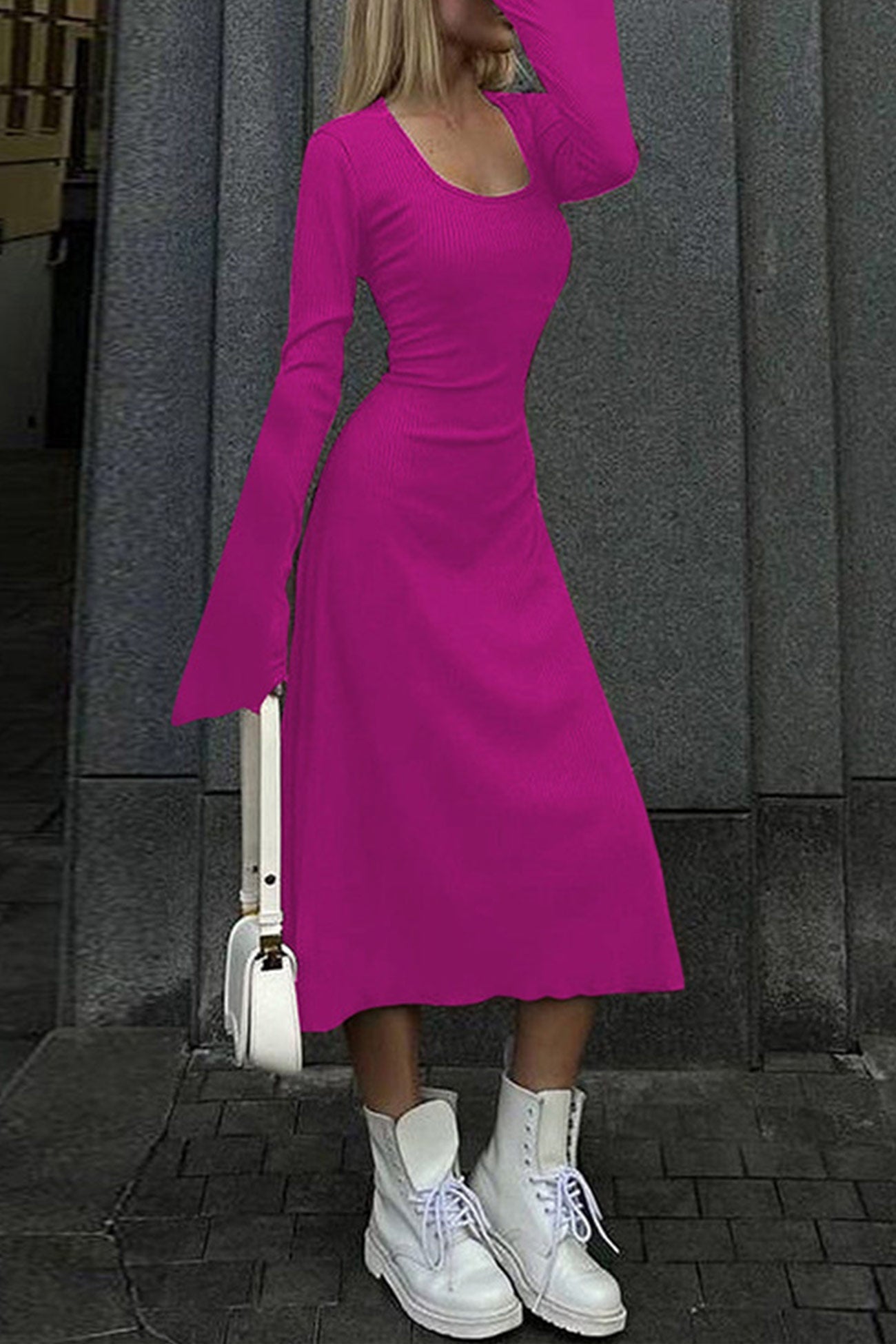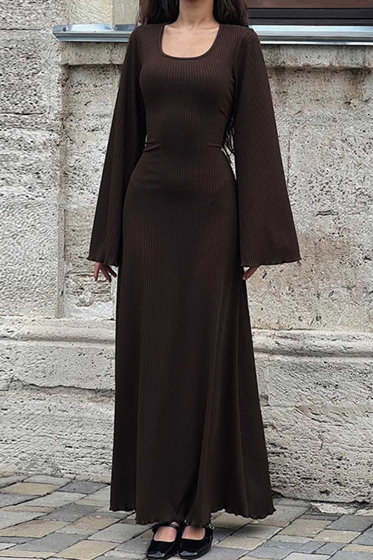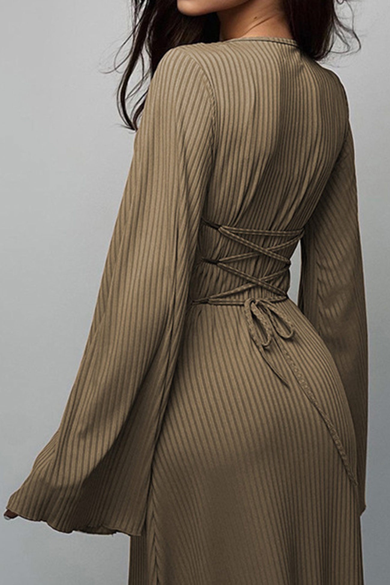 Ribbed Flares Sleeve Tie-back Dress