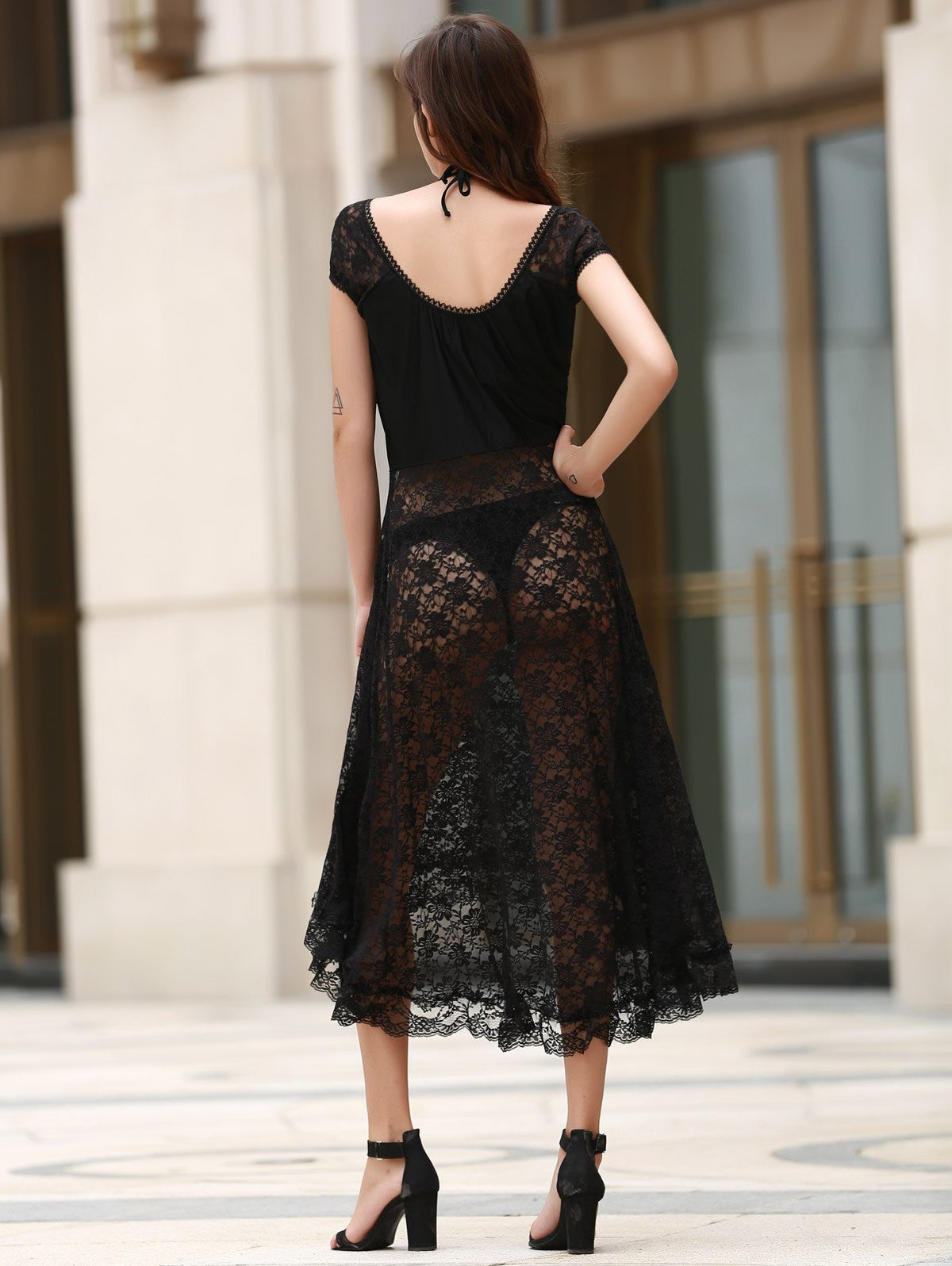 Insrs - Scoop Neck Fit and Flare Lace Dress