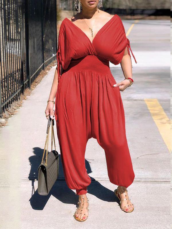 • Plunge Neck. Smocked Waist. Jogger Leg