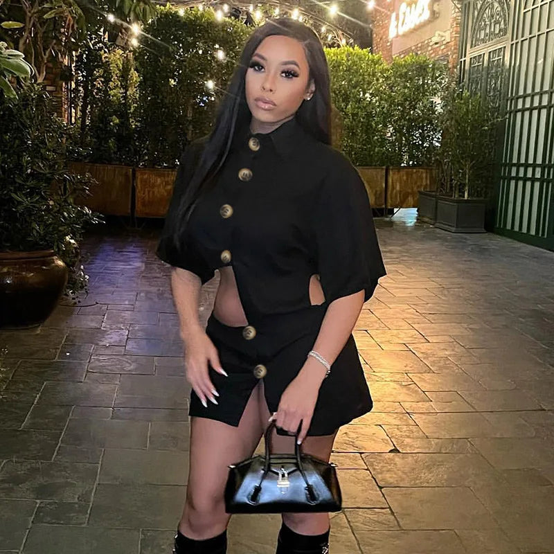 Expertly crafted for a night out. our Casual Women Mini Shirt Dress is a perfect blend of comfort and style. Featuring cut-out short sleeves. this dress accentuates your curves for a flattering silhouette. Ideal for parties and nightclubs. our versatile Mini Bodycon Dress promises to make you stand out.