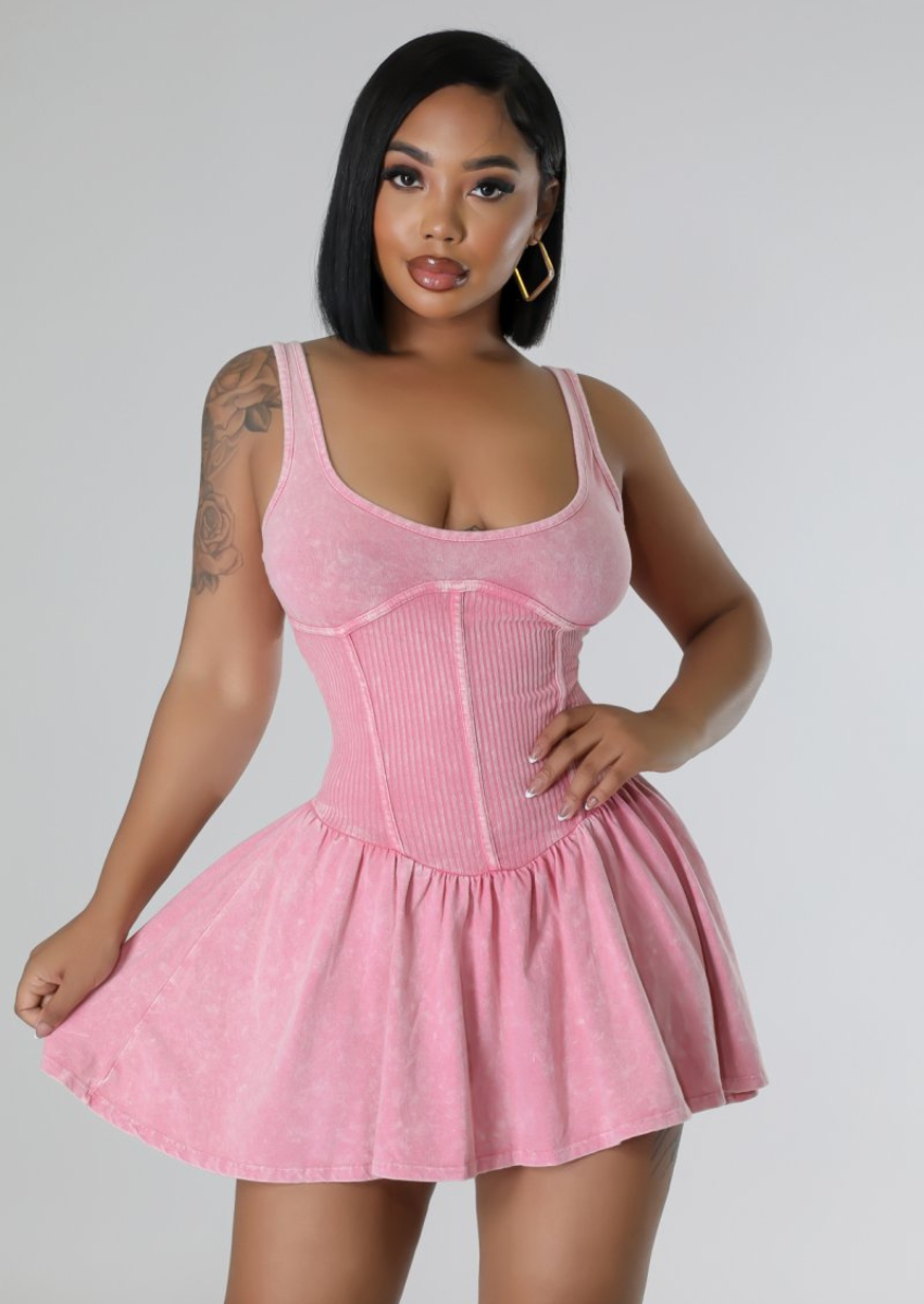 This Sleeveless Corset Style Mini Dress combines style and comfort. The sleeveless design allows for flexible movement while the corset style accentuates your curves.
