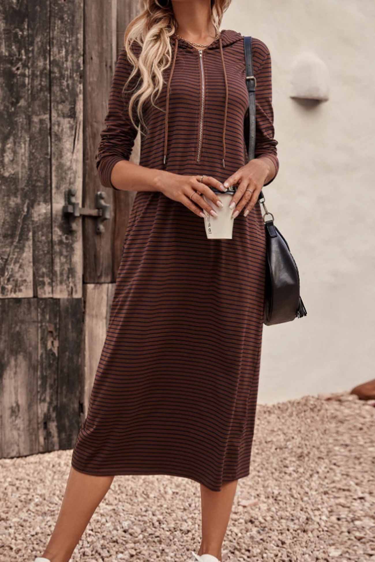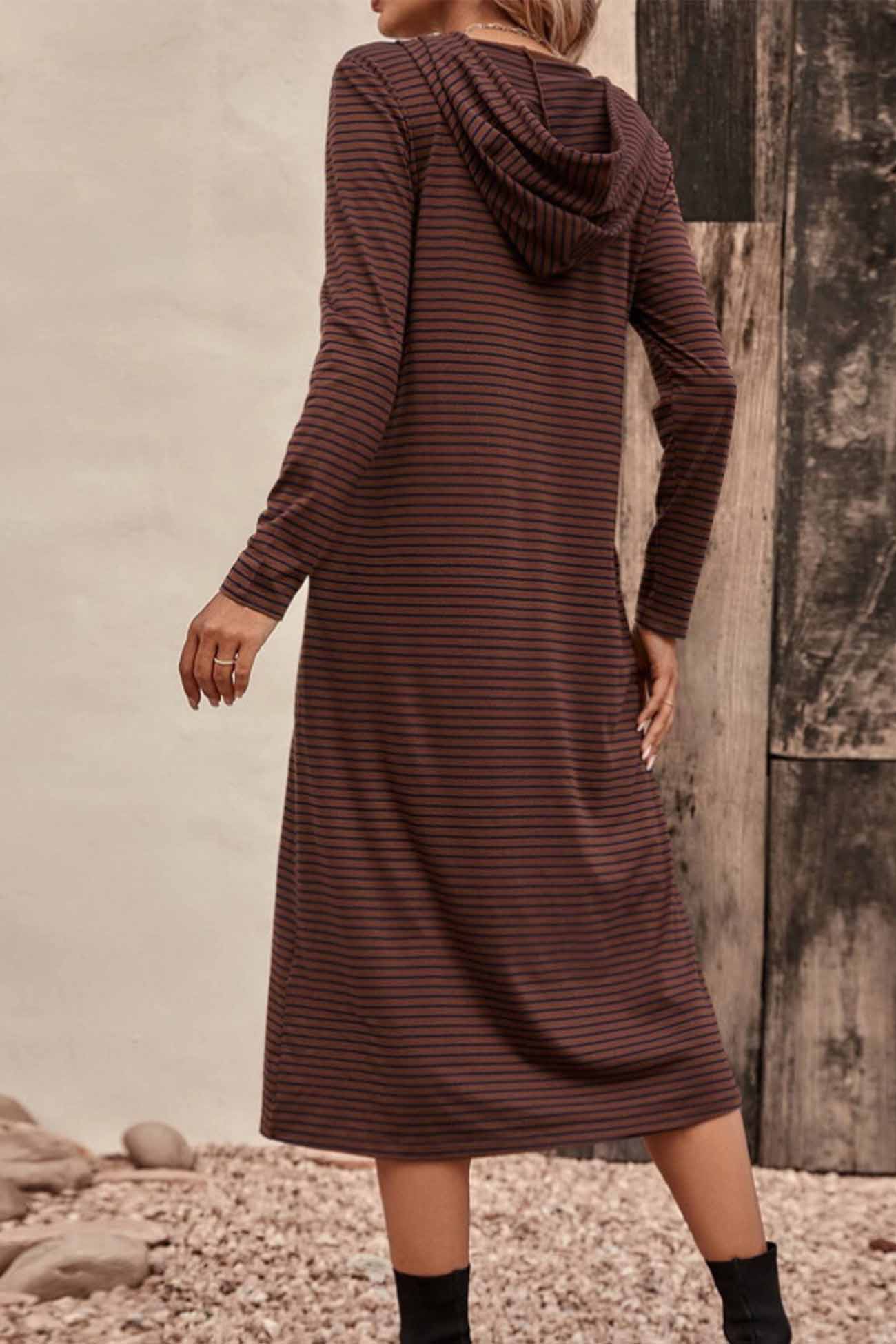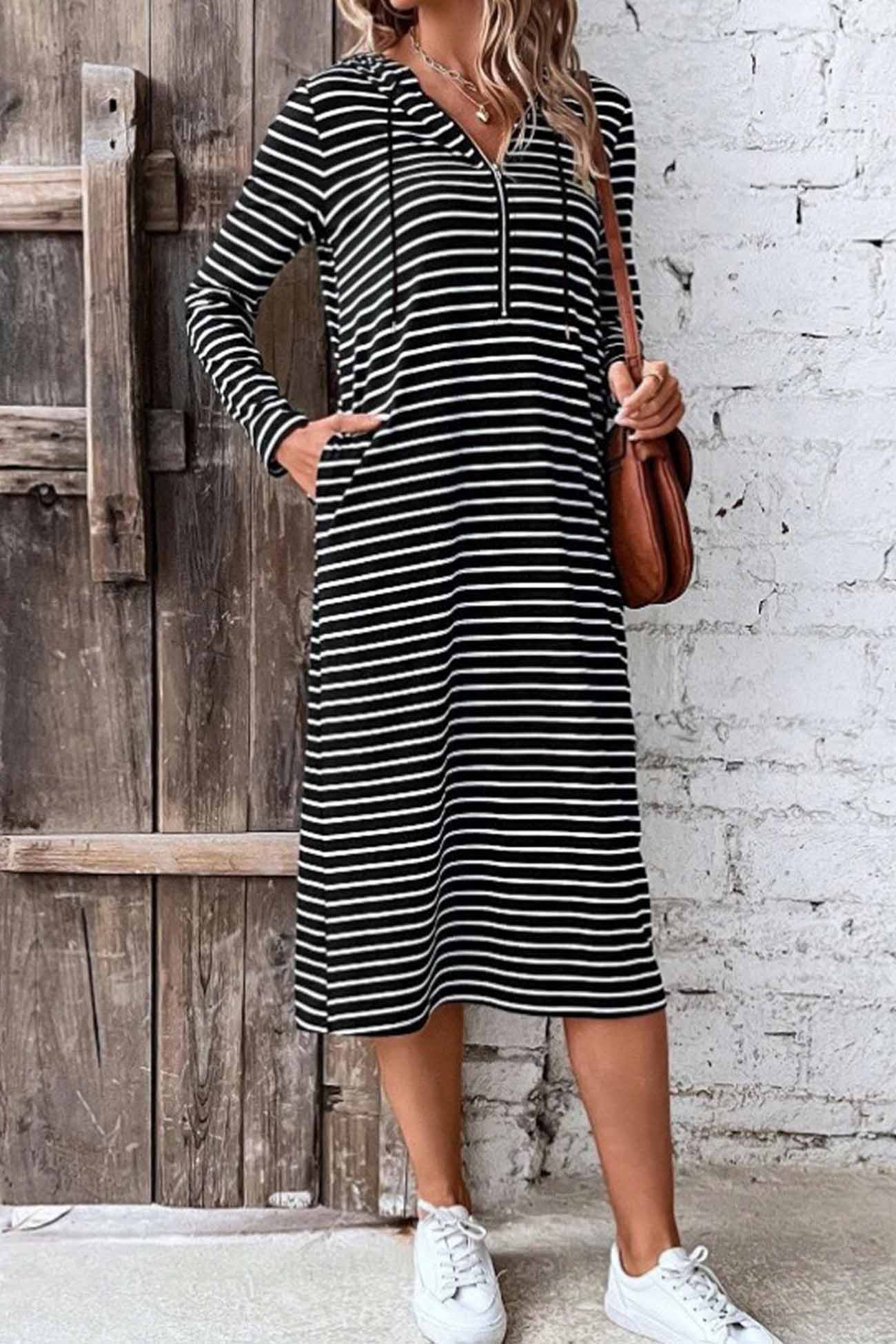 Striped Long Sleeve Hooded Dress