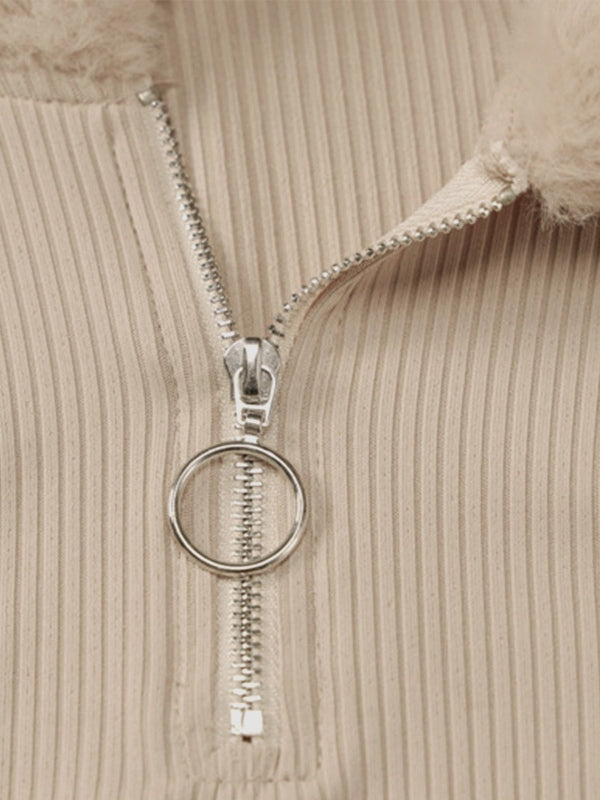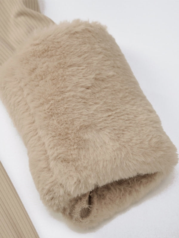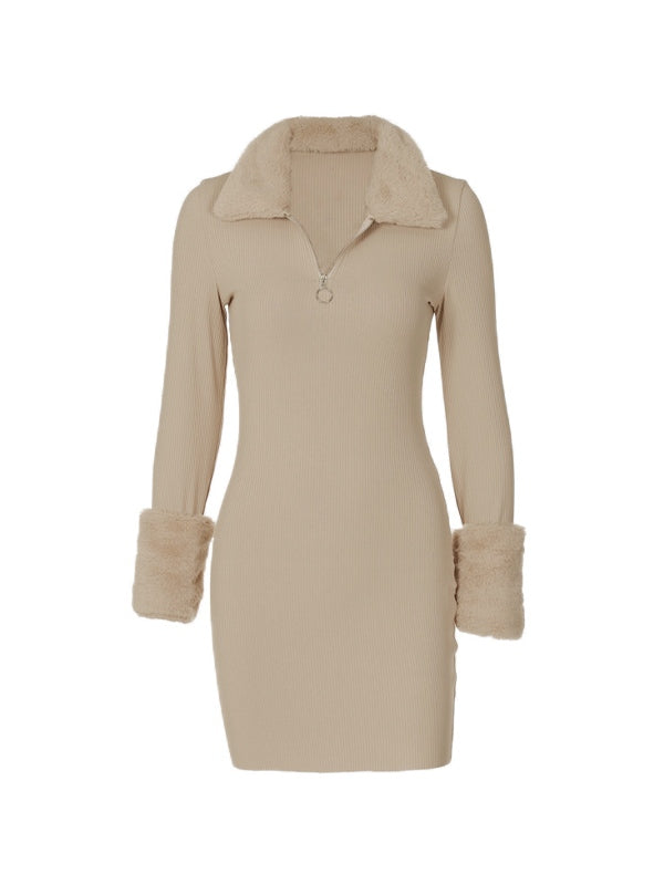 Description: This such cute dress made from stretchy ribbed fabric. shaped to bodycon silhouette. features faux fur trim on the collar and cuffs. finished with half zip fasten design.