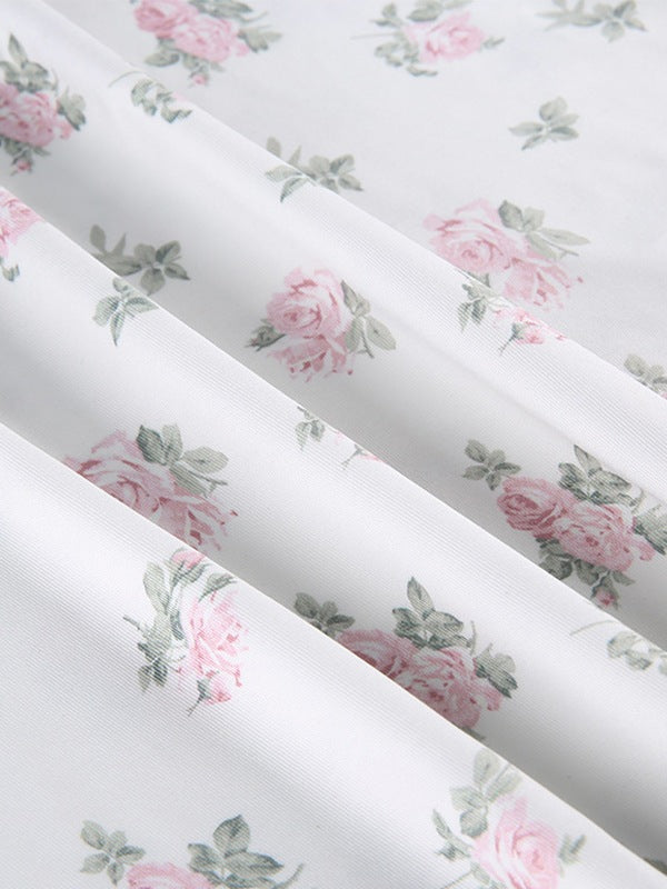 Description: Inspired by floral print all over. shaped to a bodycon silhouette. features lace paneled at collar & hem. with a dainty bow decor and an open back design.