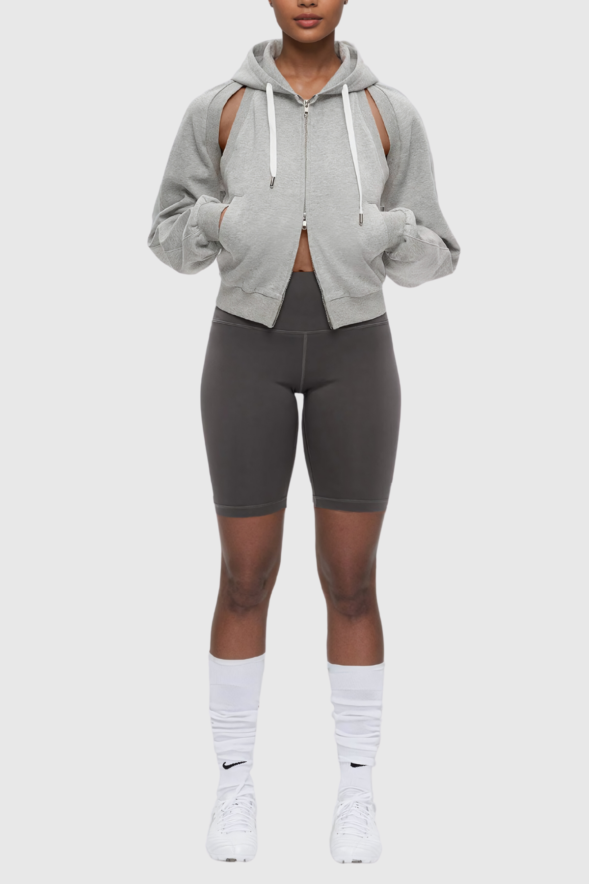 Introducing the Uditi Hooded Cutout Jacket - a must-have for any fashion-forward individual who wants to make a statement. This trendy jacket features a unique cutout design and a comfortable hood. providing both style and functionality. Upgrade your wardrobe with this versatile piece that combines fashion and practicality.
